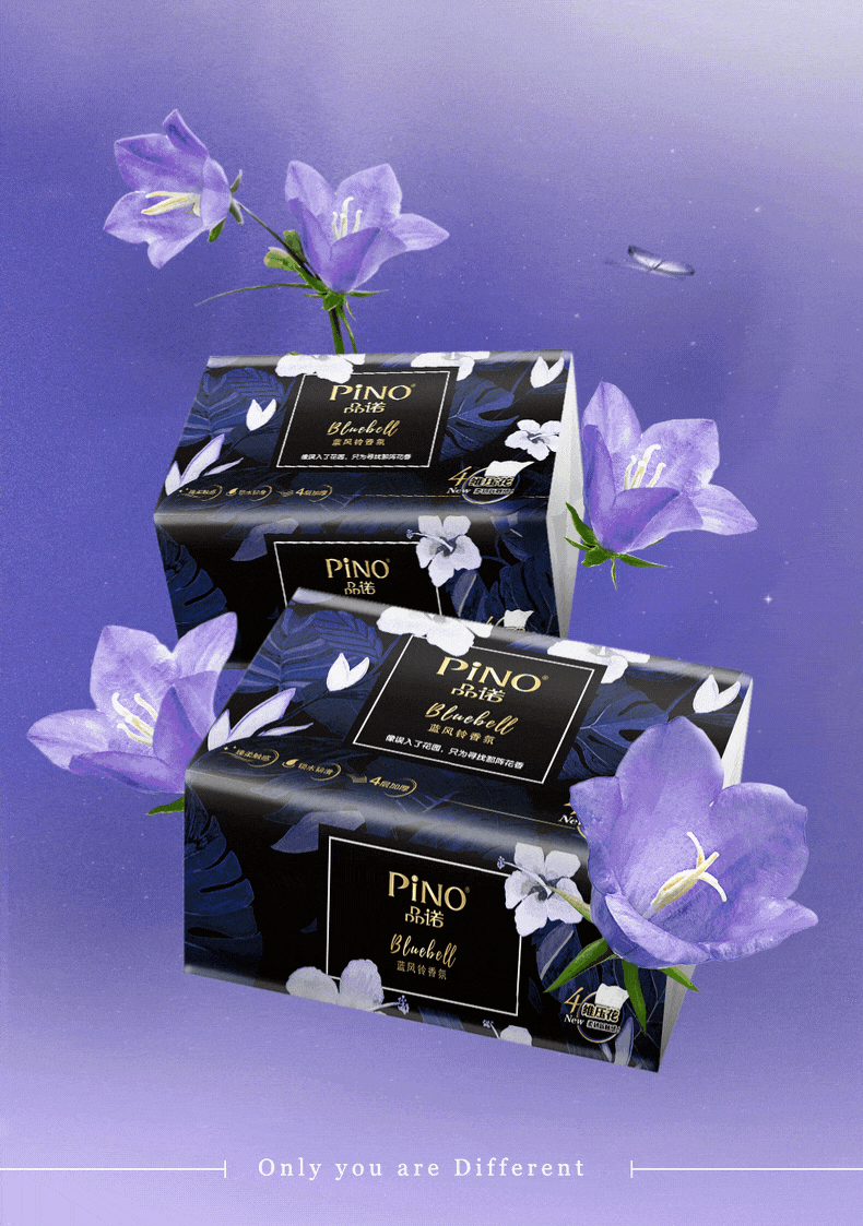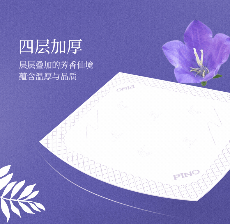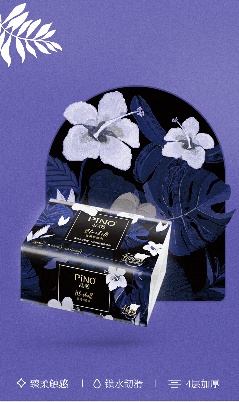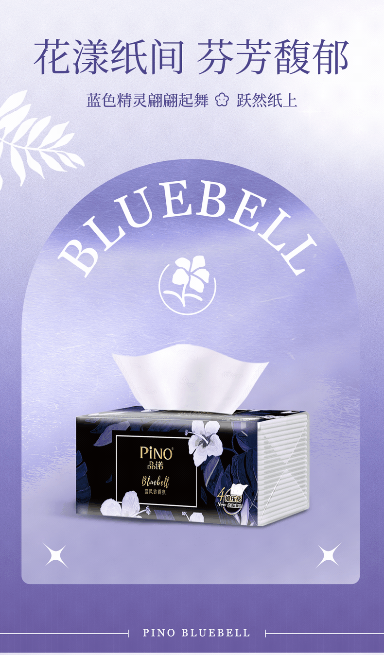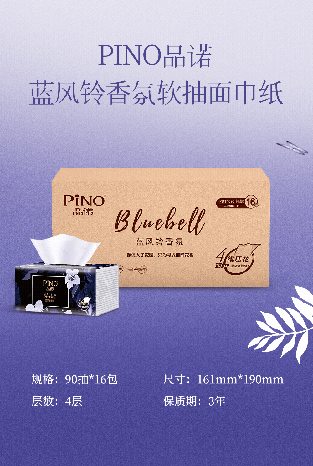 PDT4090(箱装)心相印品诺系列90抽16包四层塑装纸面巾(蓝风铃)