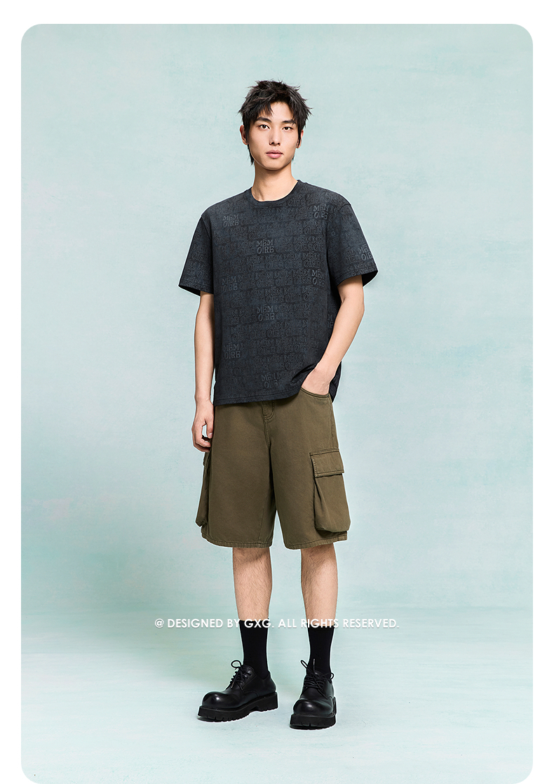 GXG男装 圆领T恤字母满印上衣短袖针织休闲简约T恤 2025年夏季热卖