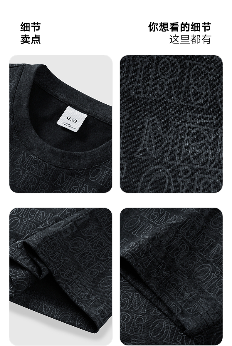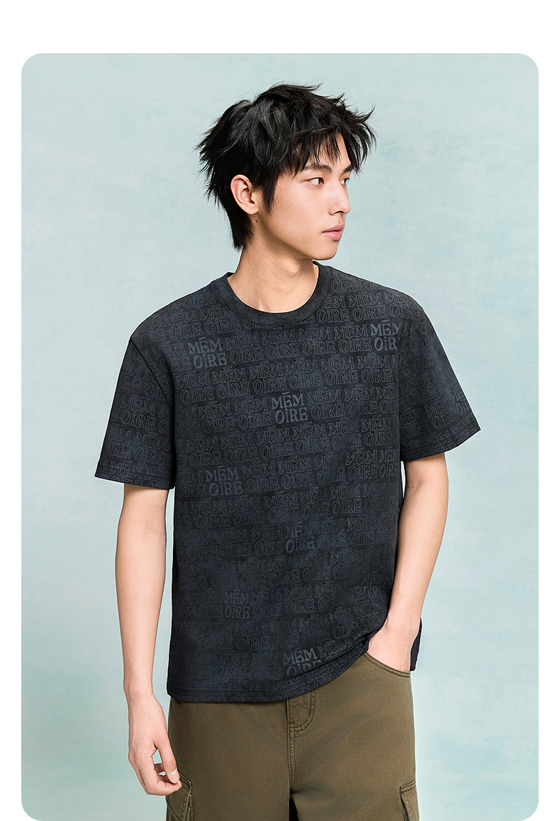 GXG男装 圆领T恤全身满印上衣短袖针织 休闲简约短袖T恤 2025夏季热卖