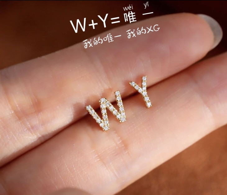 ✔️专属于自己的字母耳钉是你我名字的结合