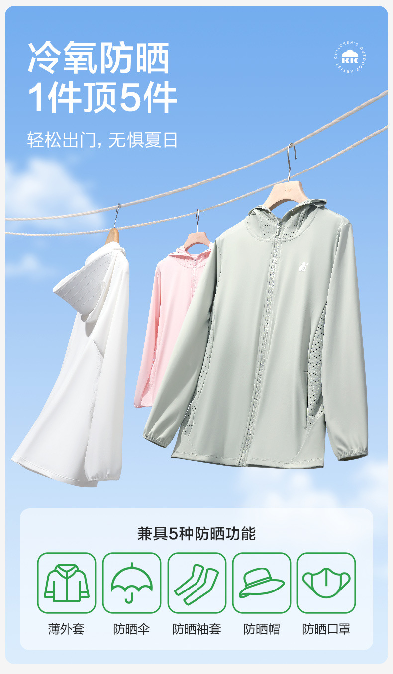 KK树儿童防晒衣男童女童夏季薄款外套新款宝宝防紫外线皮 肤衣透气