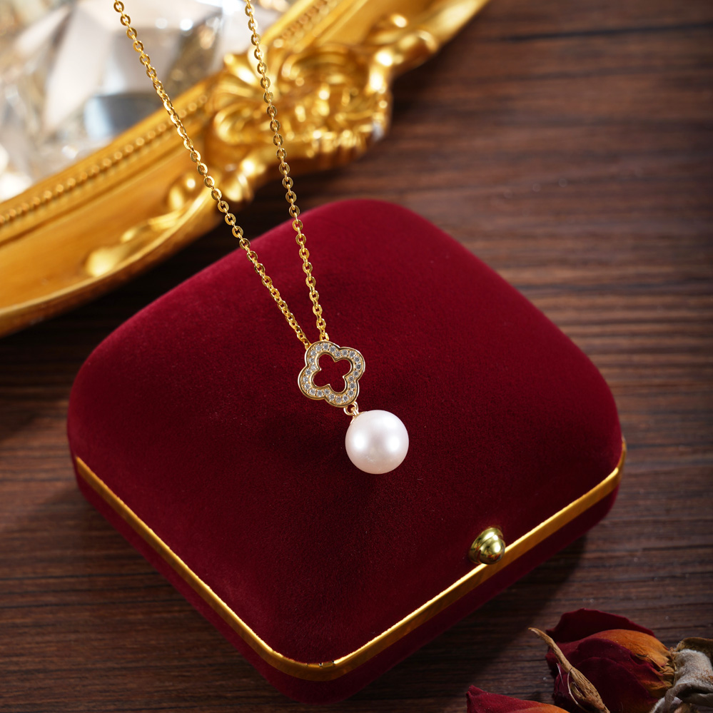 子佩集【幸运之约】银S925珍珠惜王妃套链项链【YP0062】镀金四叶草2602
