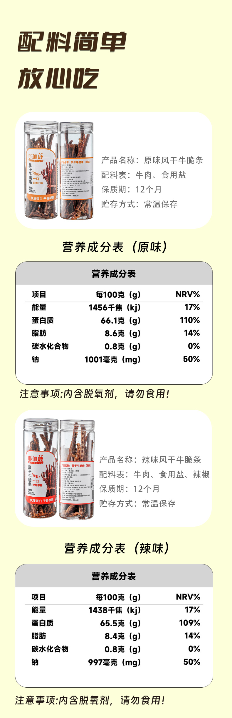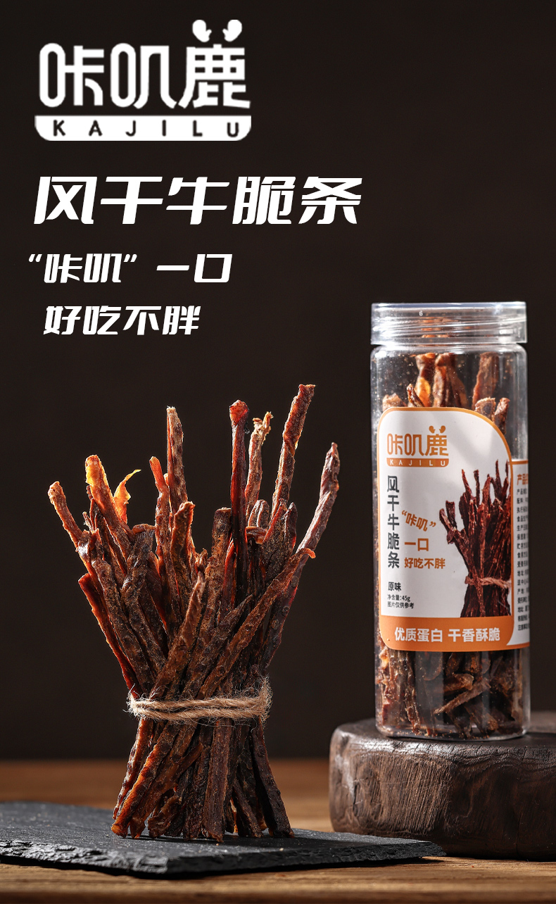 咔叽鹿牛脆条风干牛肉牛脆片牛肉干肉脯休闲小零食45g罐装轻脂内蒙特产