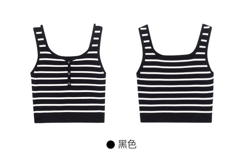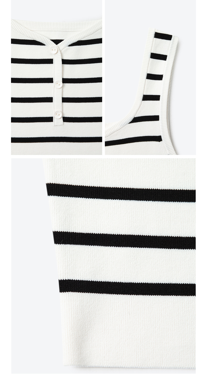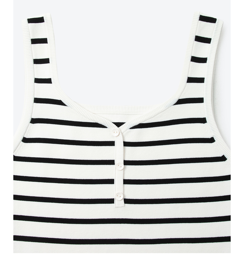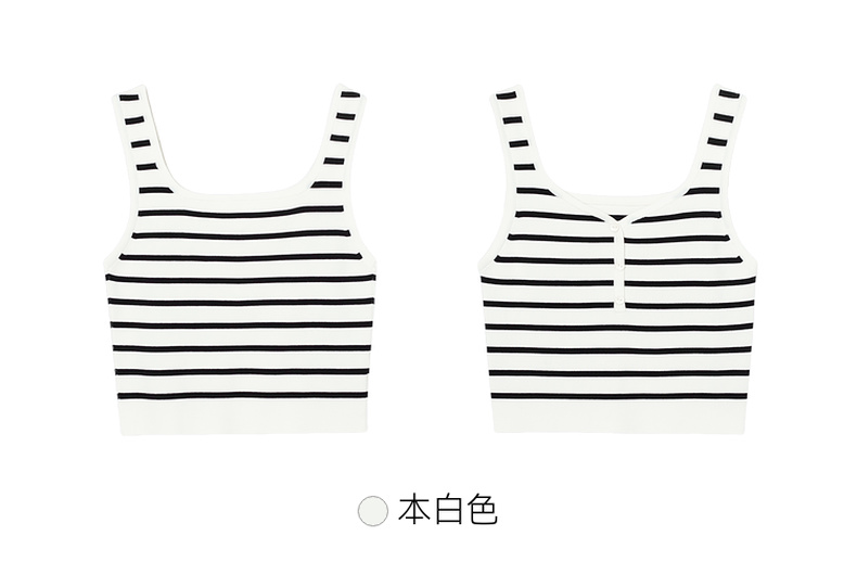 【严选】【心动毛衣】诗凡黎条纹大U领修身打底背心2024秋新款内搭上衣女SF7131081