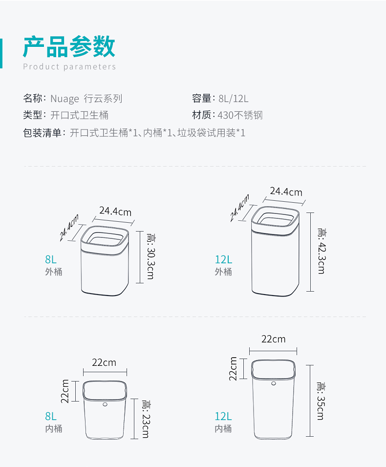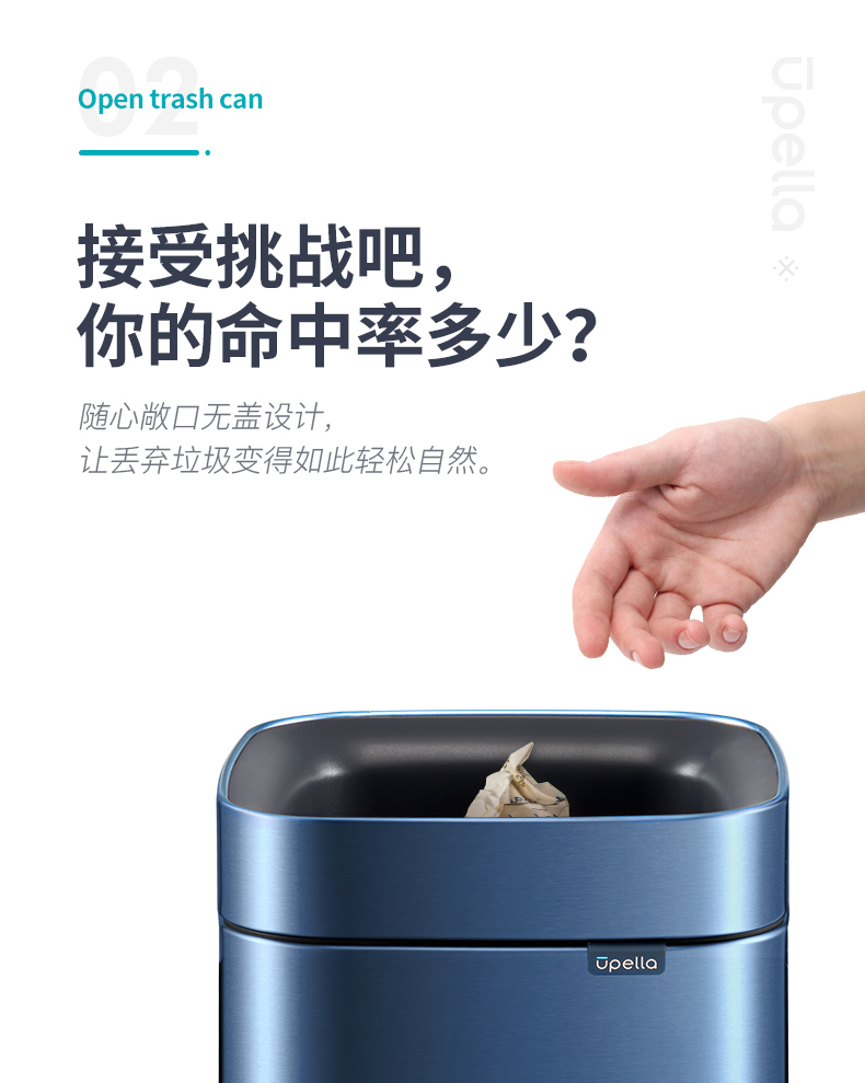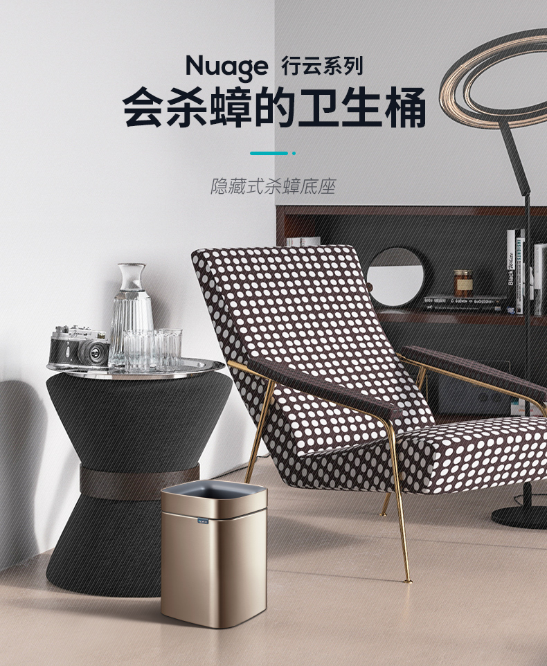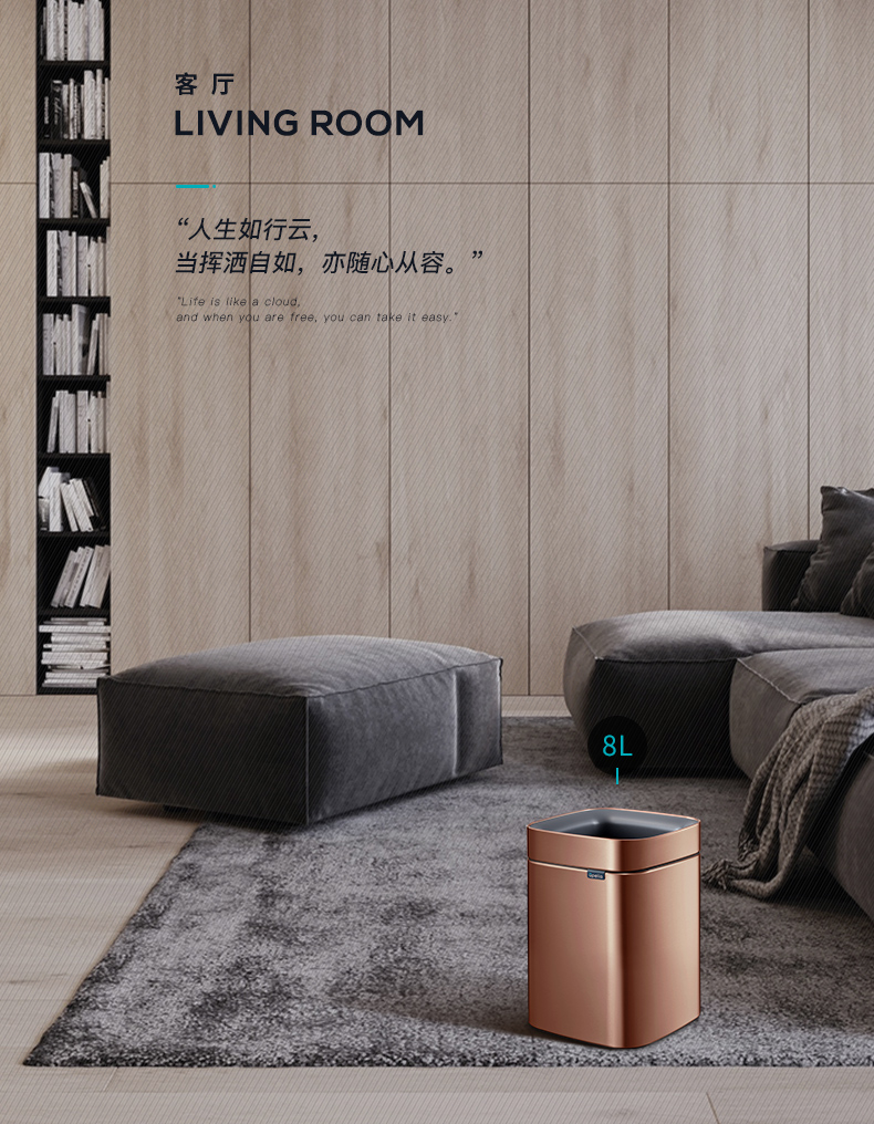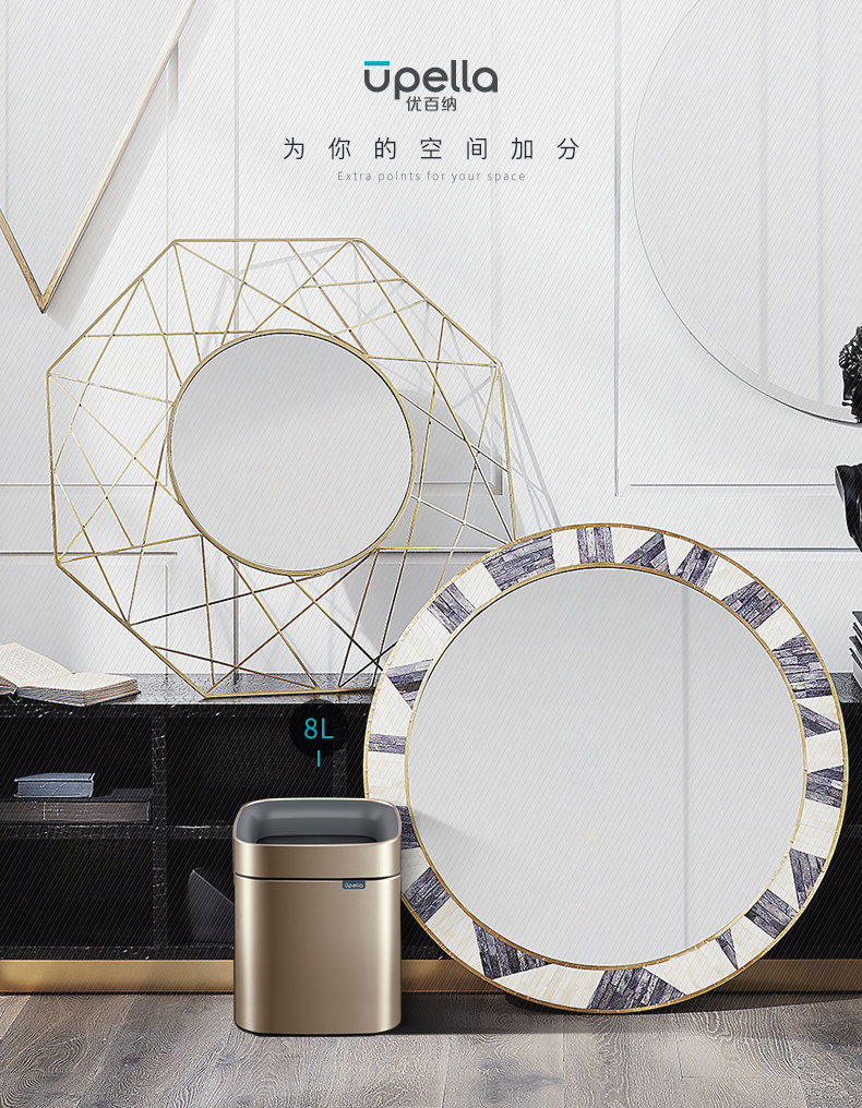 优百纳行云系列创意欧式家用不锈钢垃圾桶 卧室客厅厨房办公室 无盖开口