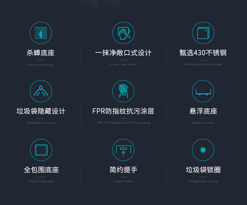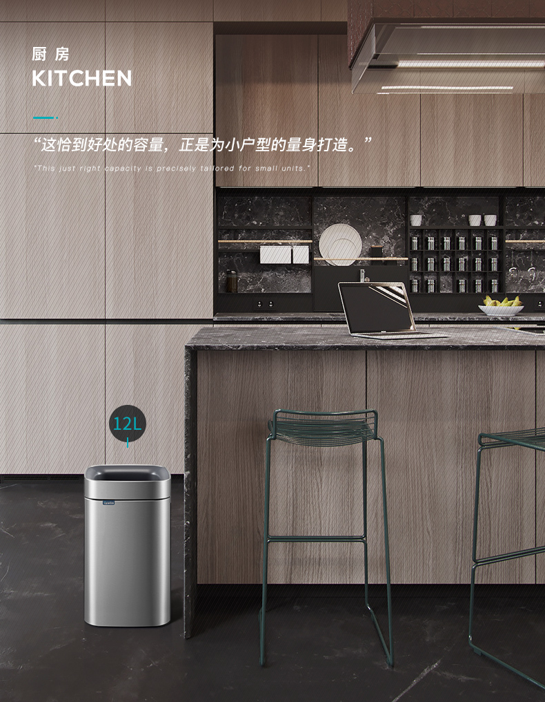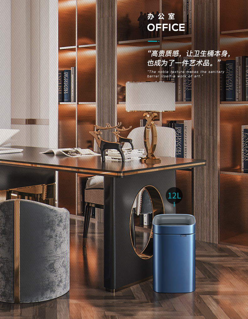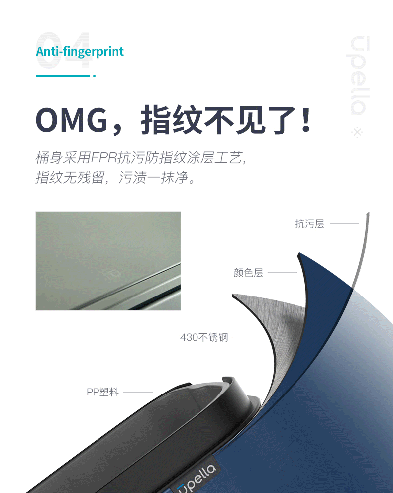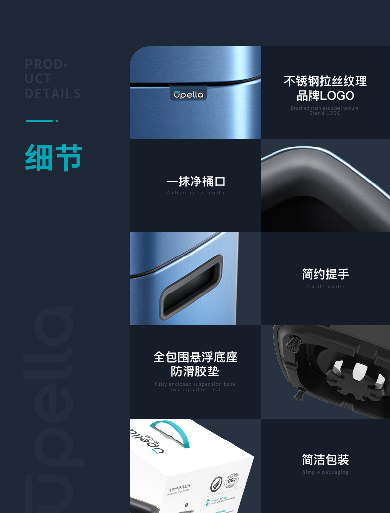 优百纳行云系列创意欧式家用不锈钢垃圾桶 卧室客厅厨房办公室 无盖开口