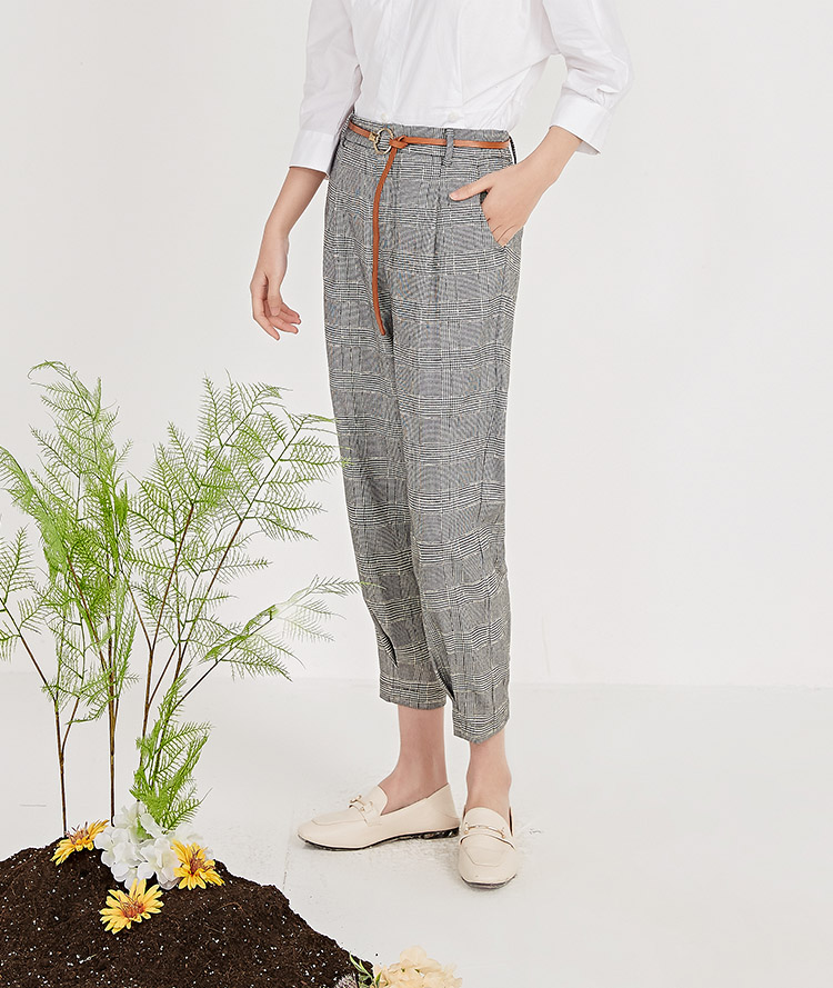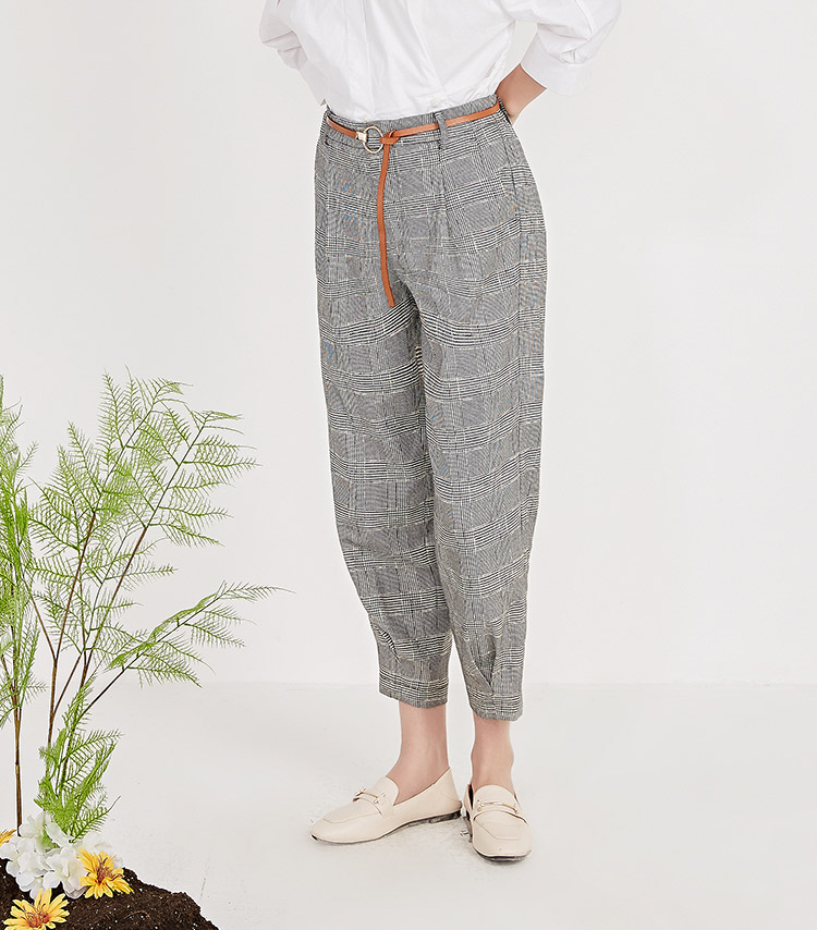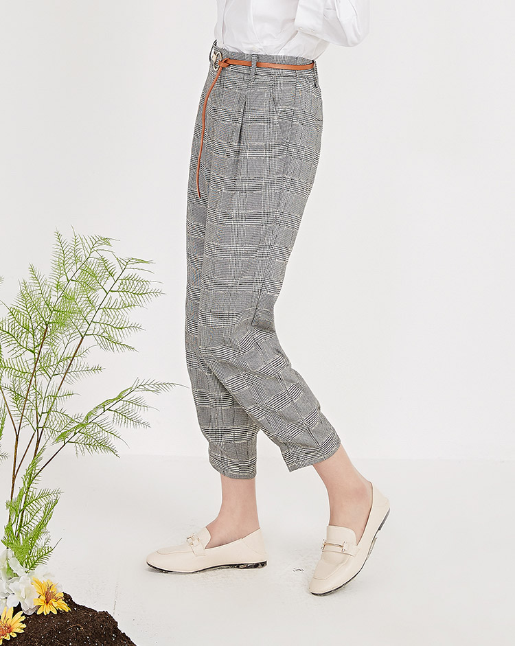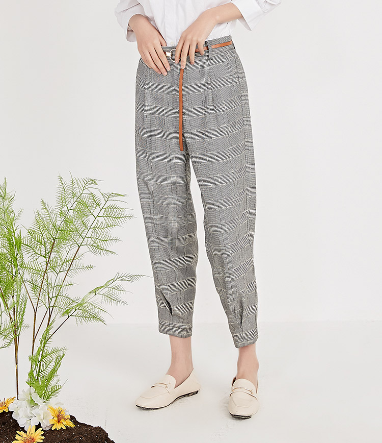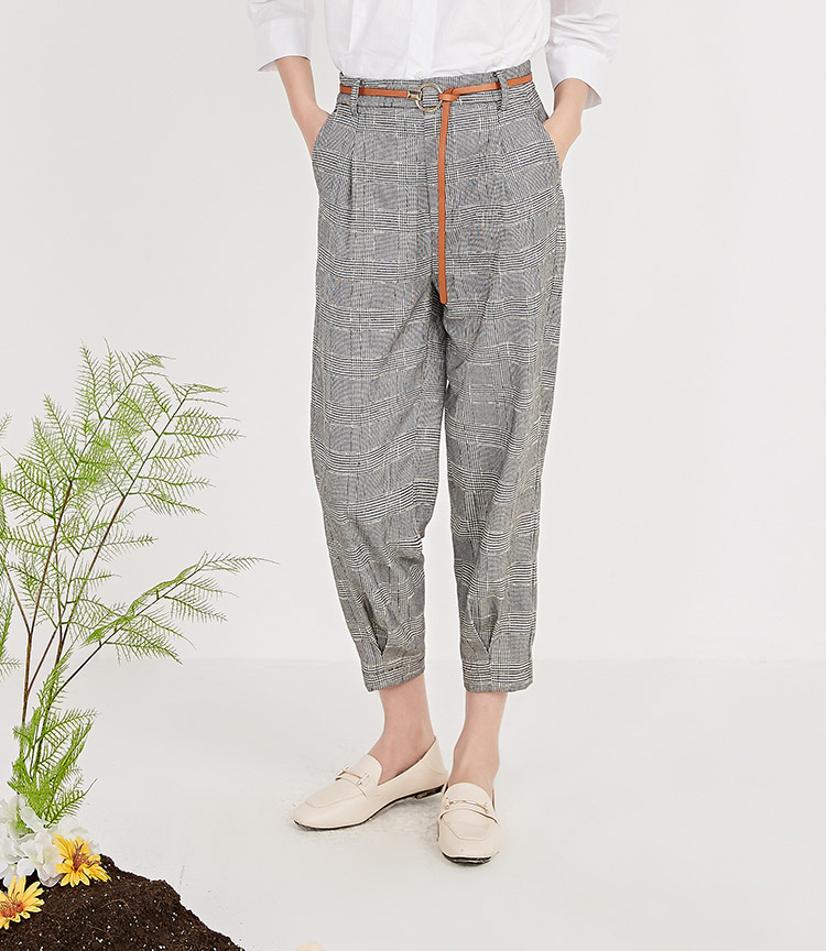 NUTS春季新品时尚经典黑白格长裤女211073058B