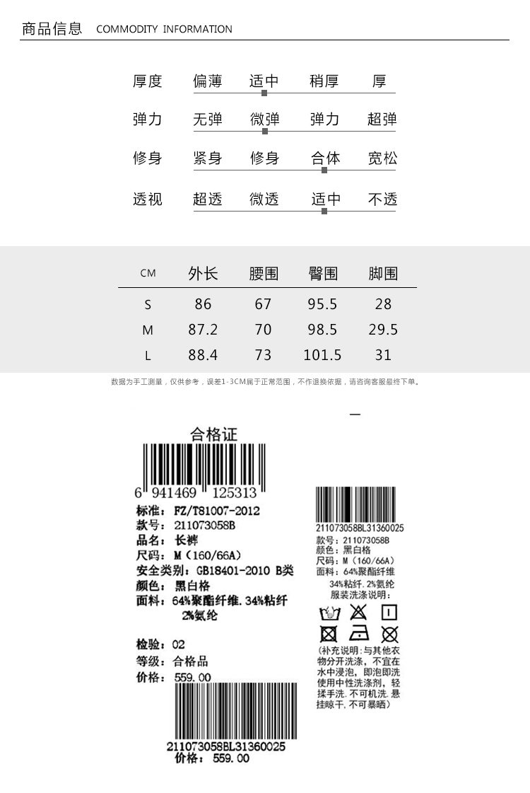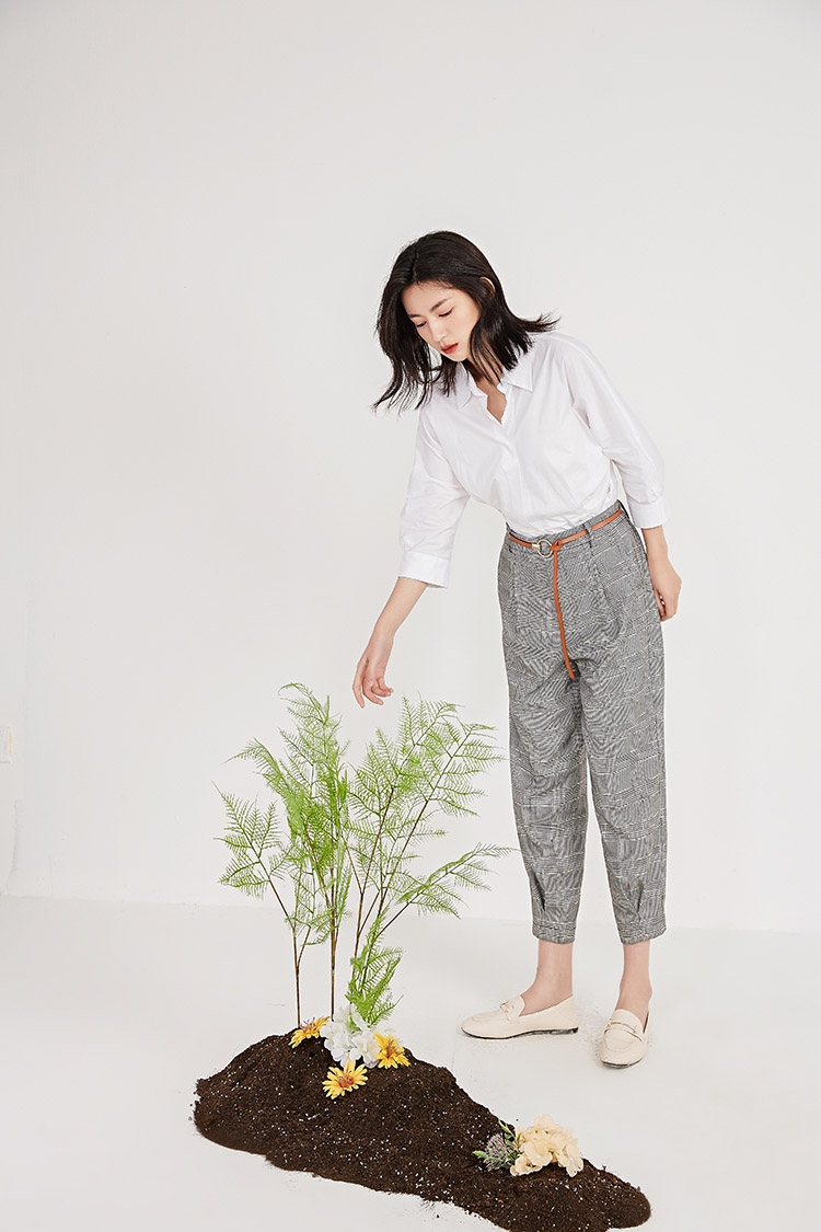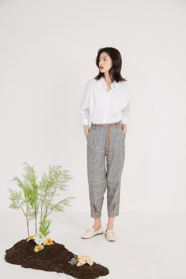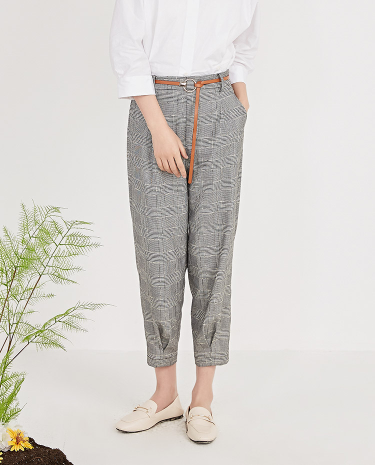 NUTS春季新品时尚经典黑白格长裤女211073058B