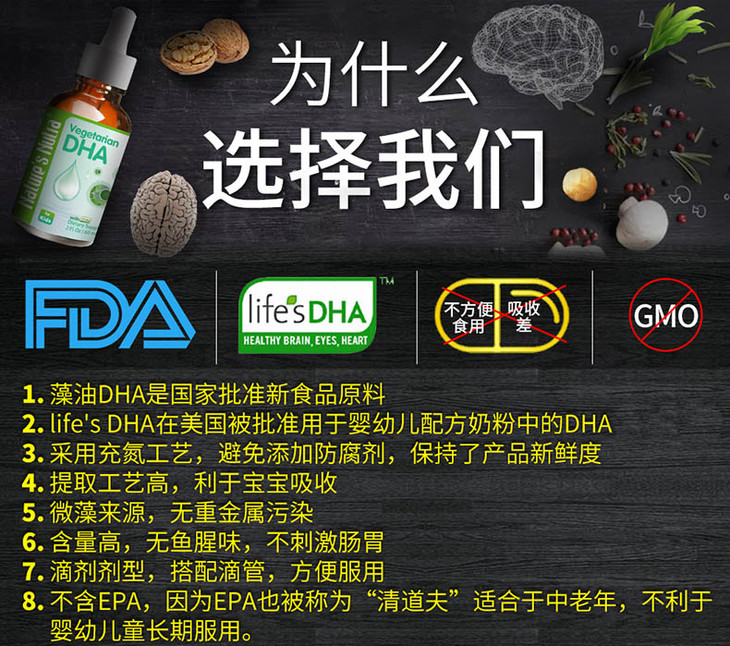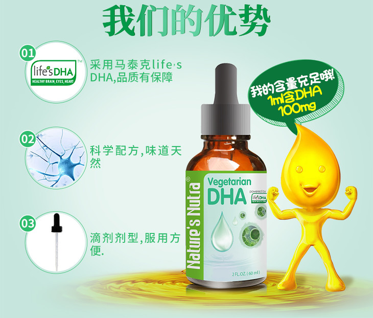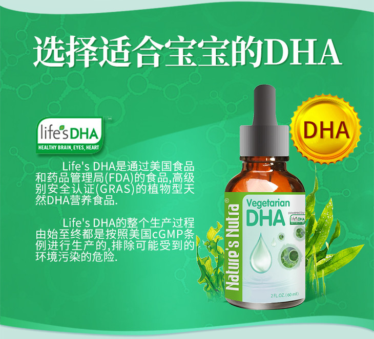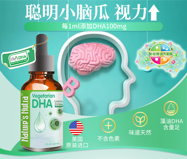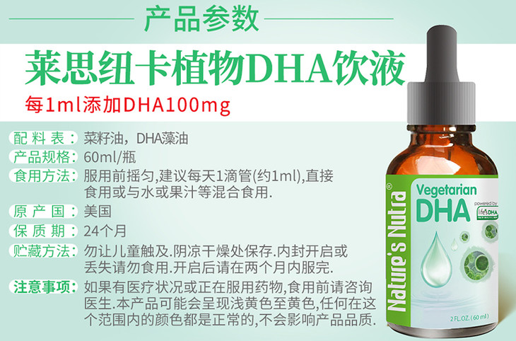 美国莱思纽卡藻油DHA滴剂60ml(莱思纽卡任选2个包邮)