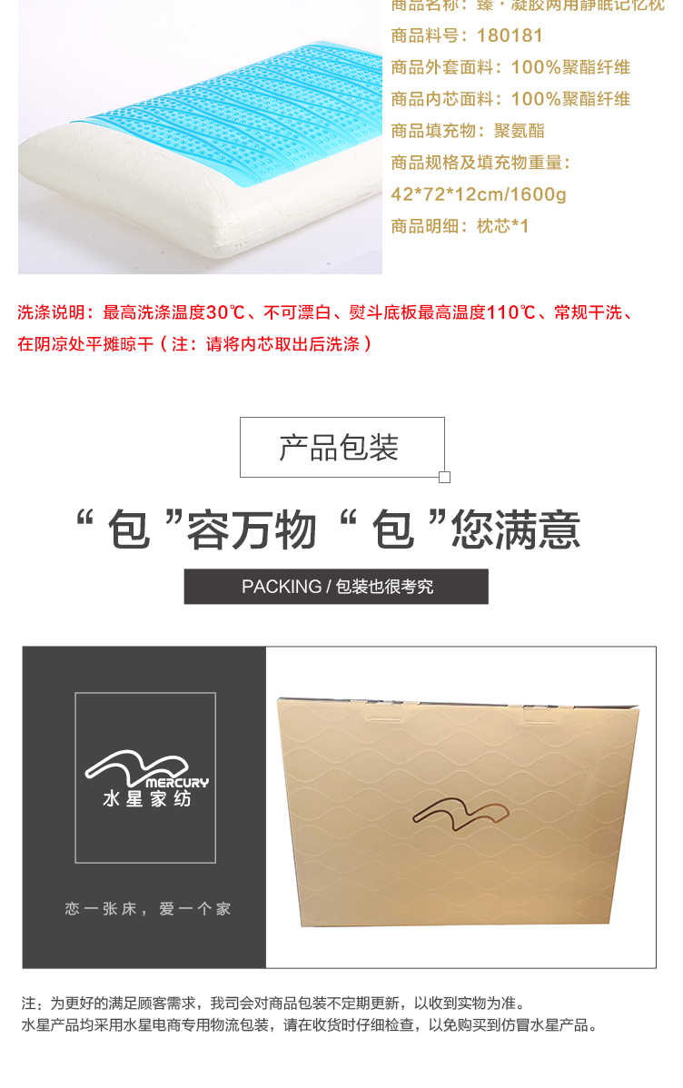 水星家纺 臻·凝胶两用静眠记忆枕ZY 42×72×12cm