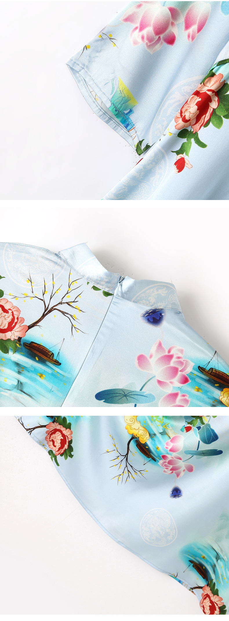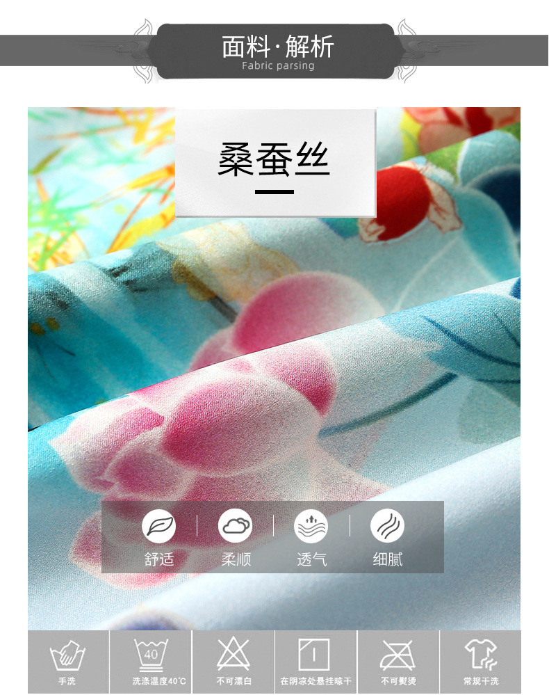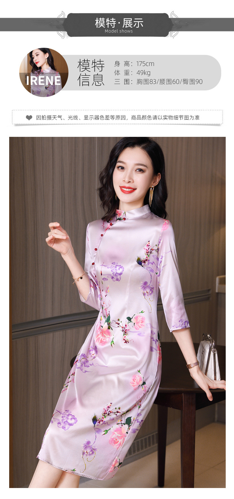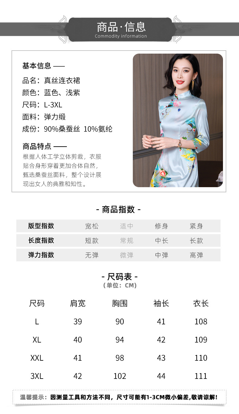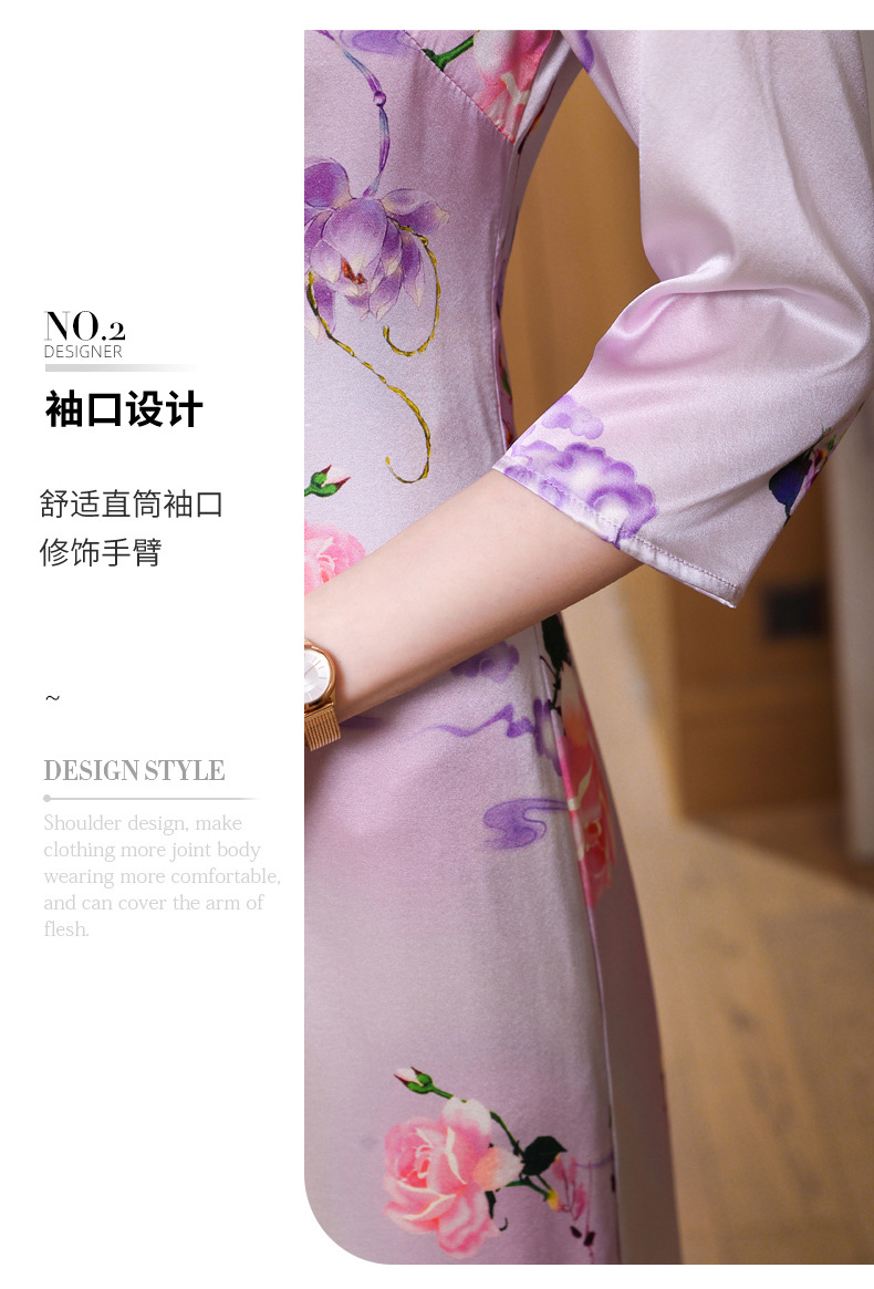 真丝改良旗袍,桑蚕丝年轻气质七分袖印花复古连衣裙KQN-27362