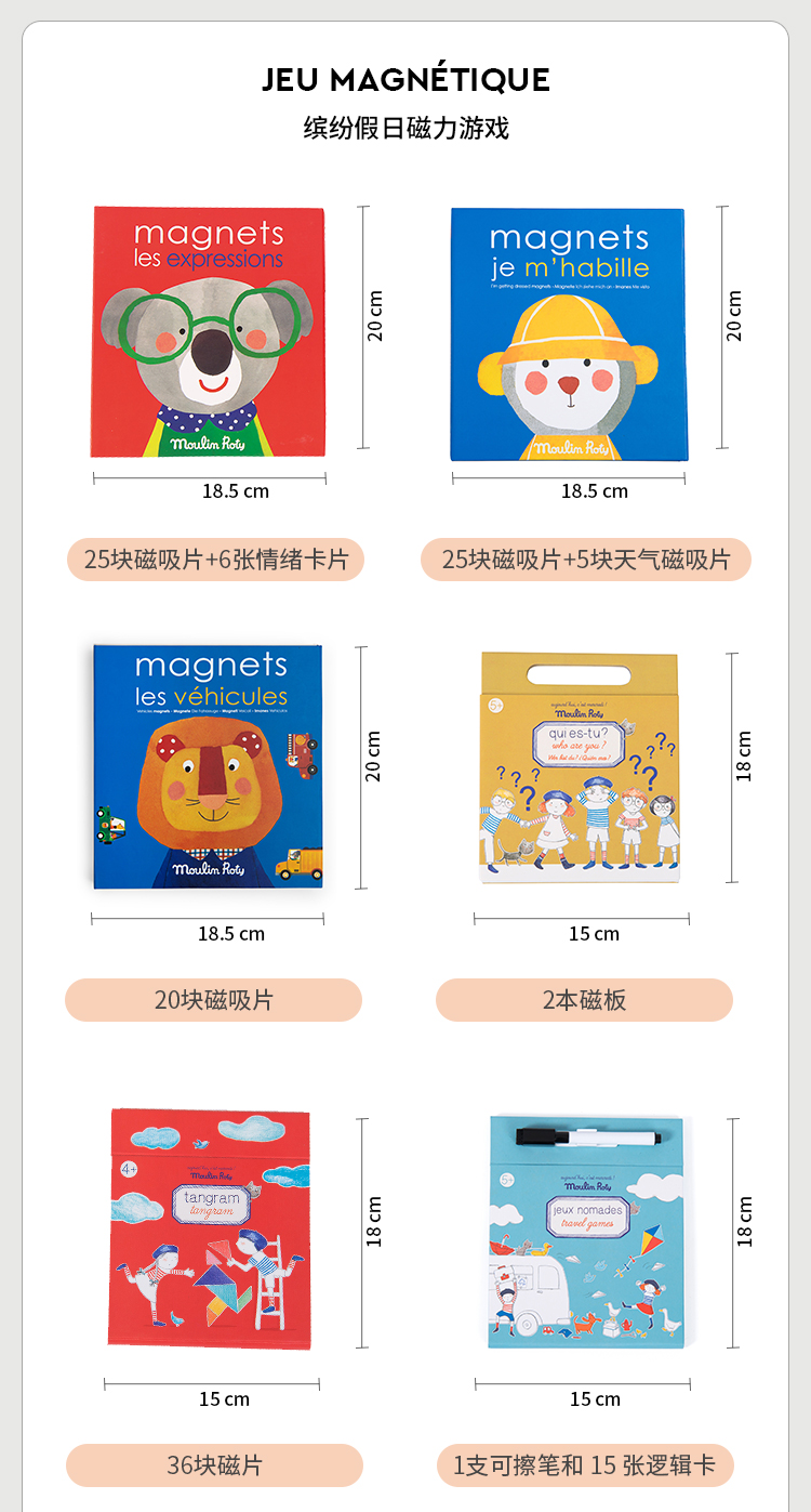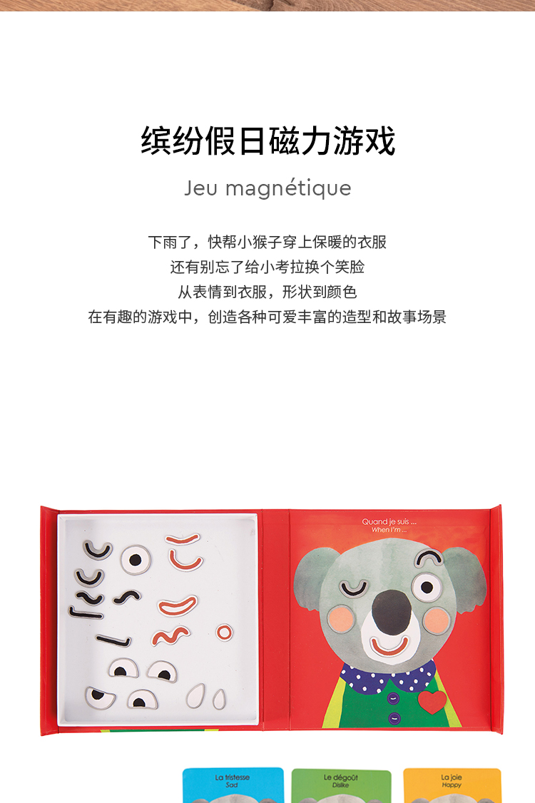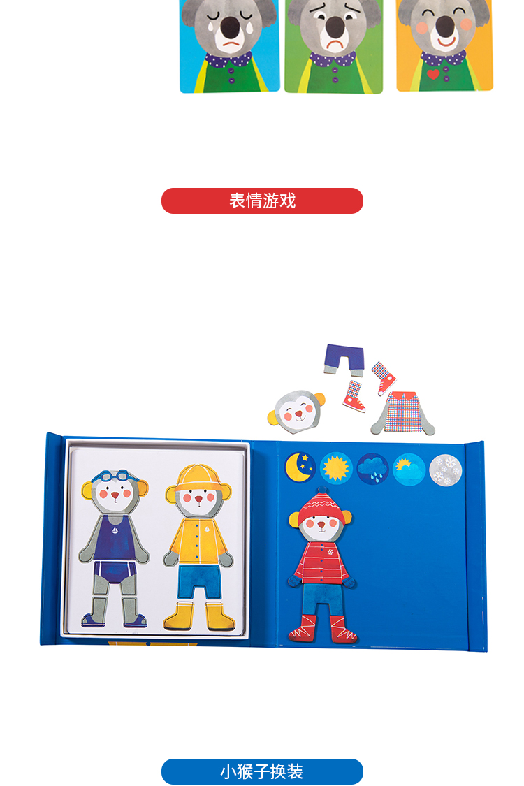Moulin Roty 小猴子换装游戏 磁力游戏盒 适合4岁+ 趣味小游戏 认知教育 缤纷乐系列 法国品牌-661365