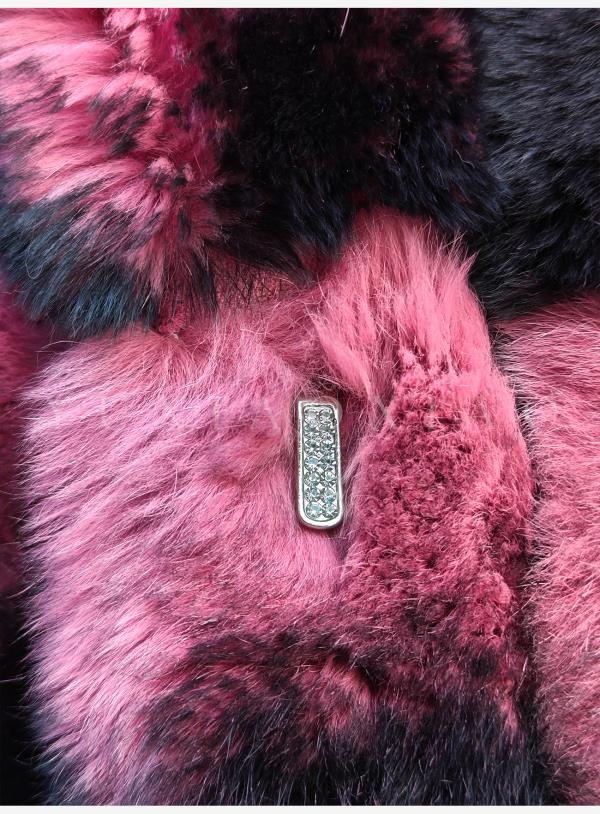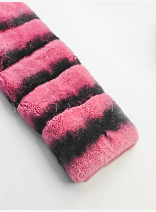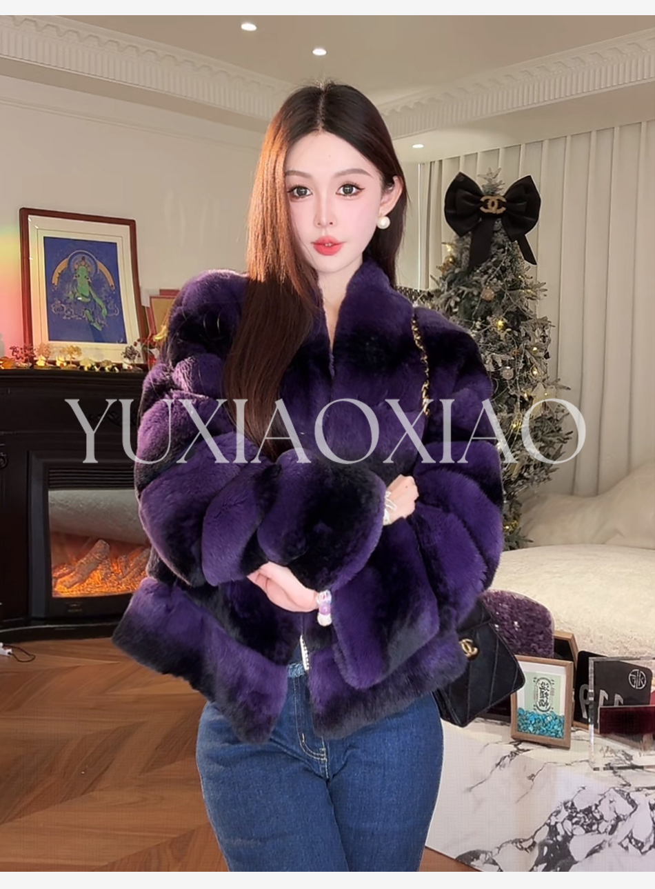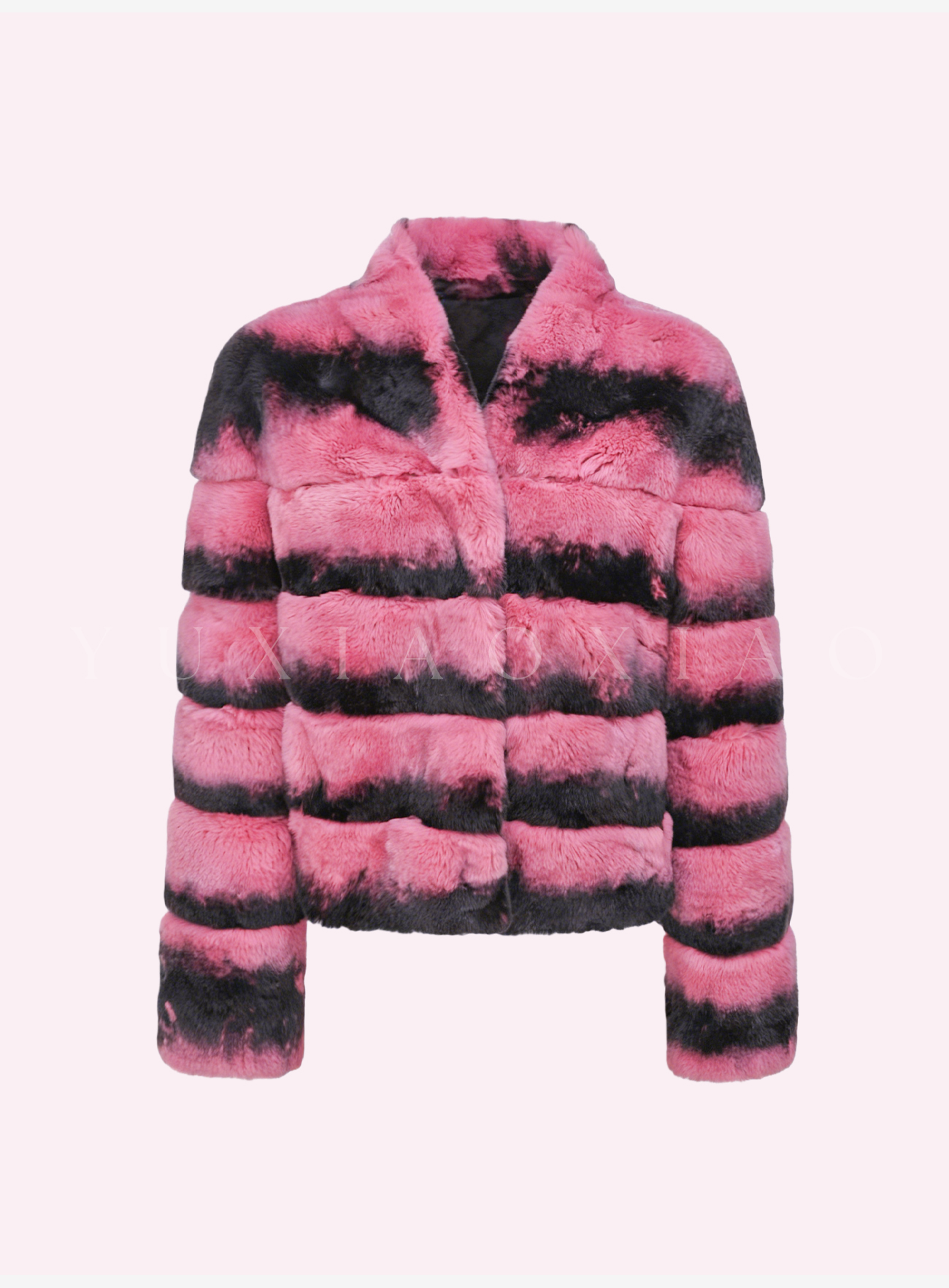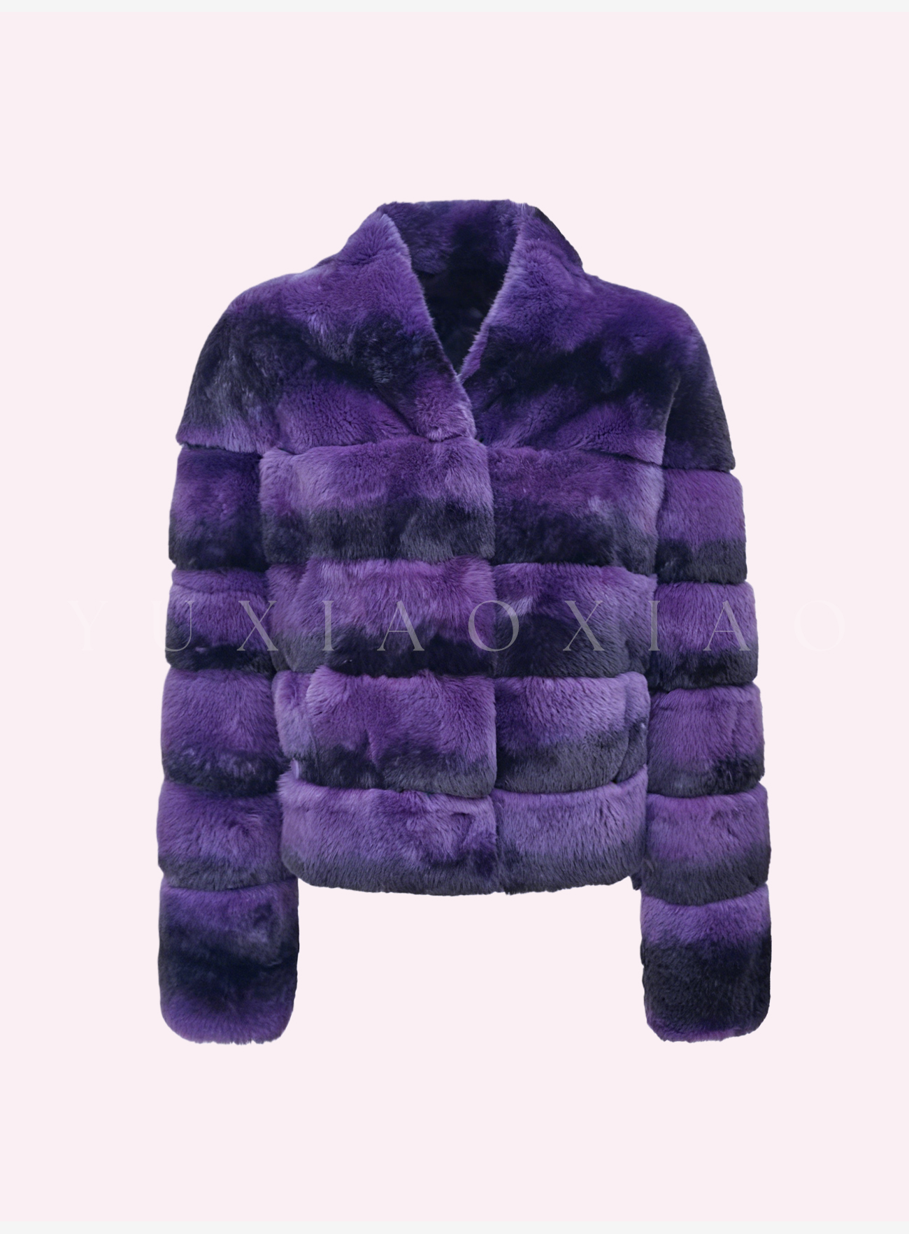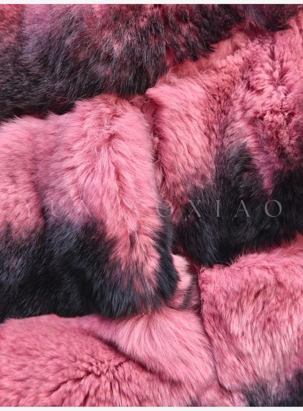 余潇潇【女星周刊】渐变层次整件横排雷克斯獭兔蓬松V领皮草外套