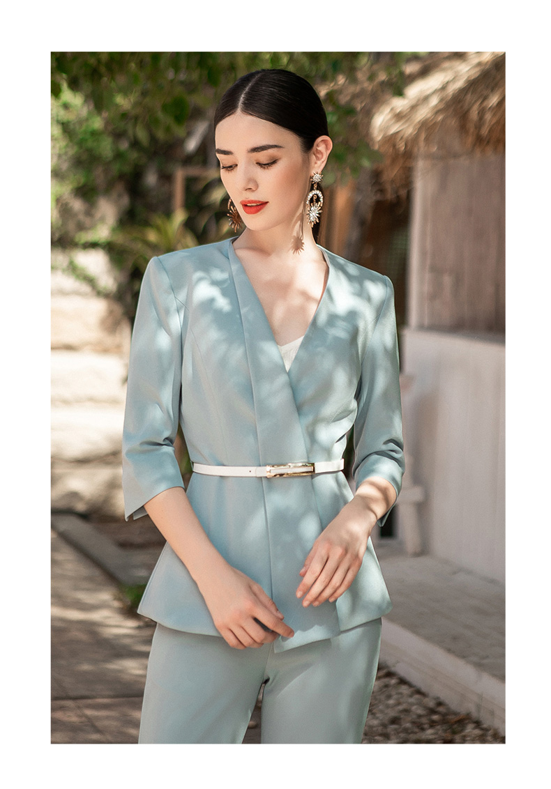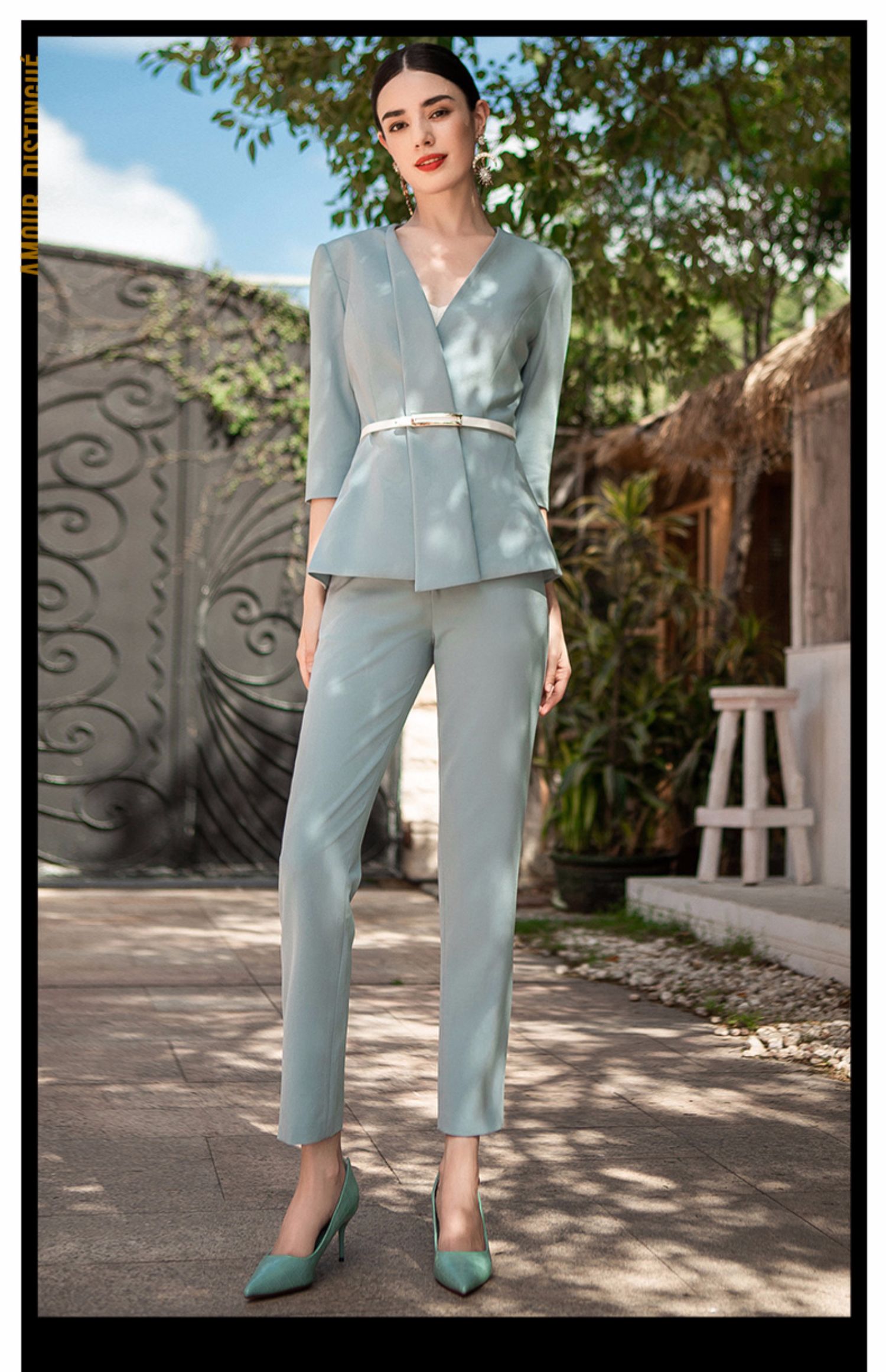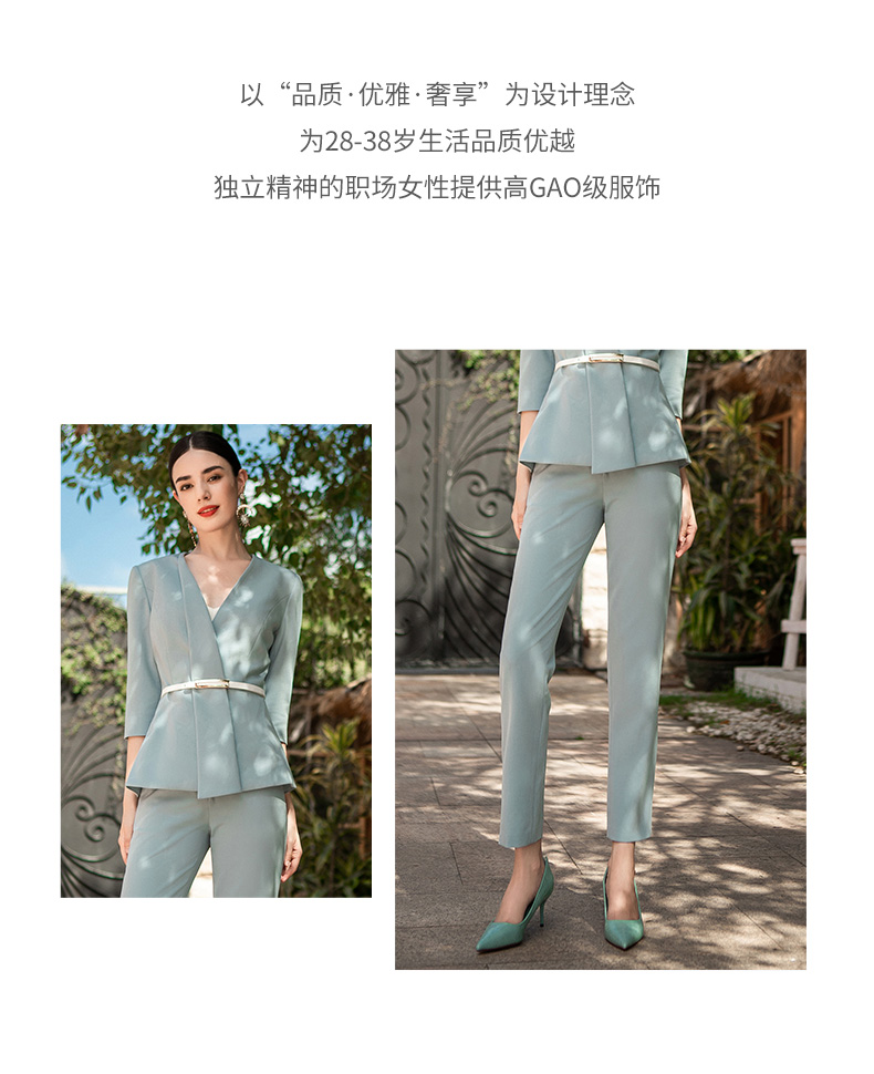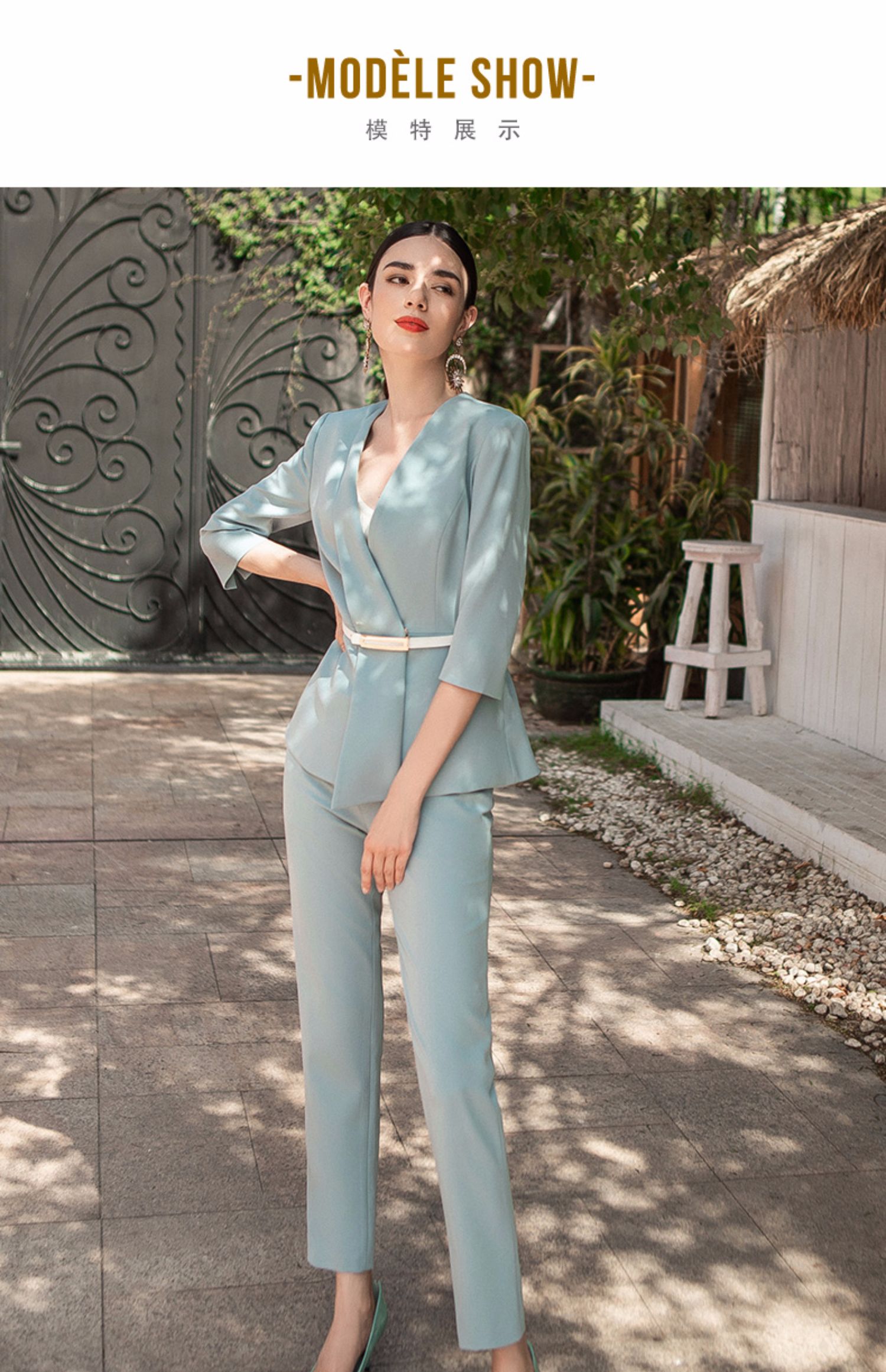 IWY/蓝色职业装西装套装女时尚干练商务正装工作服正式公务员面试C1341-L+P1117