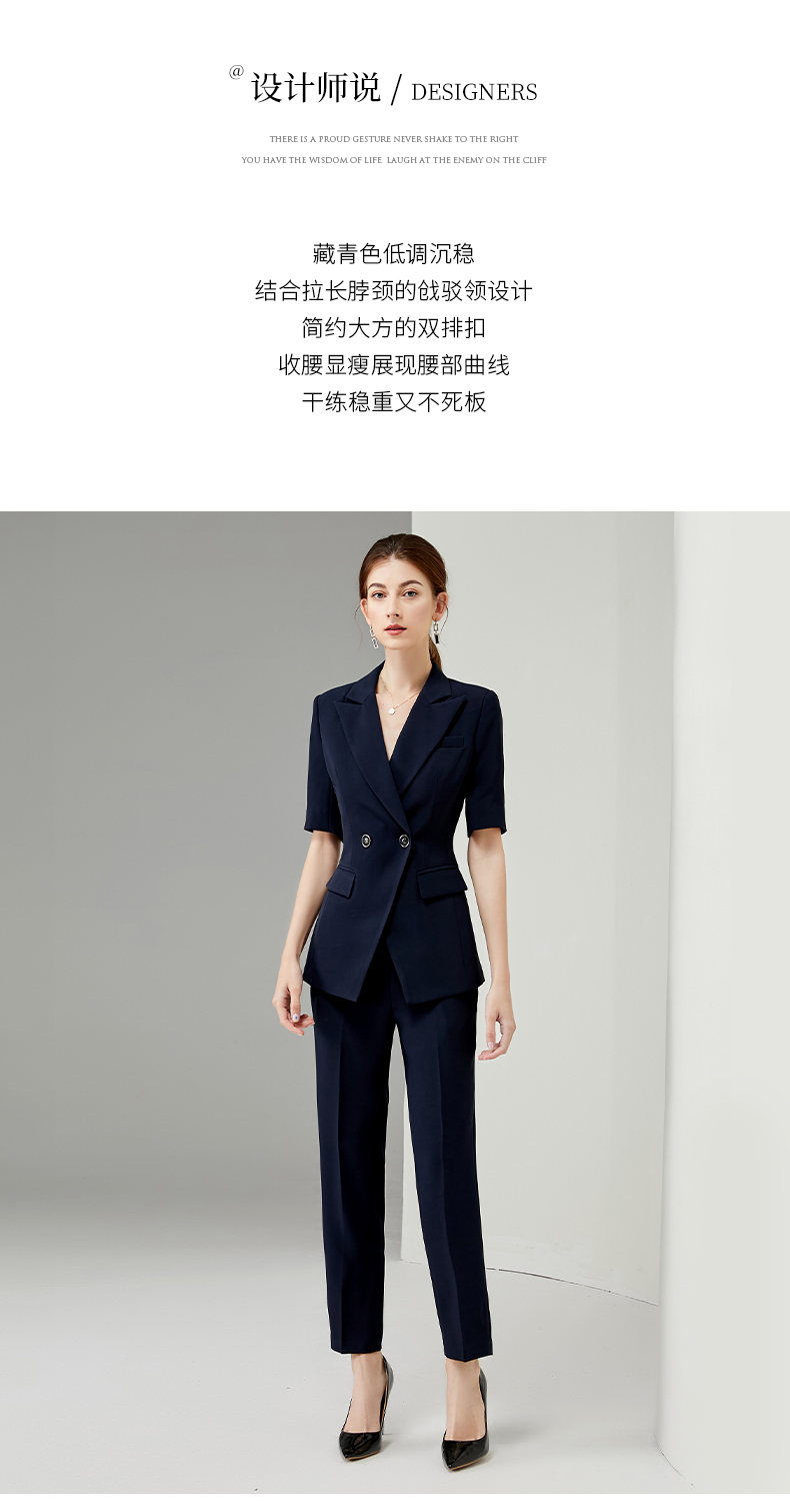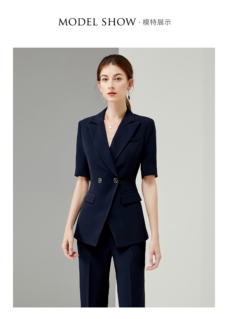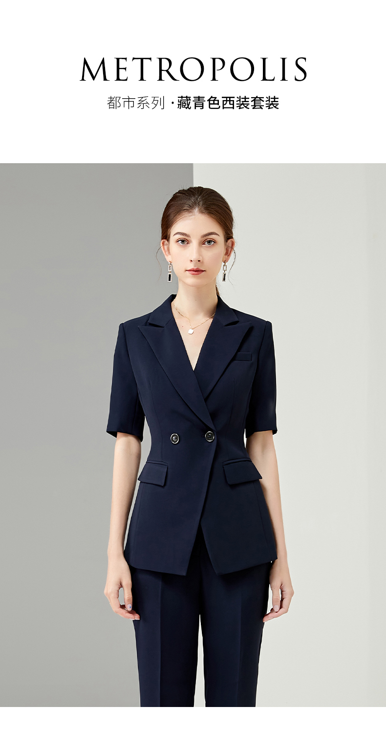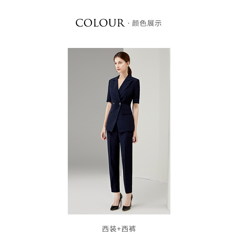 IWY/高端职业装女夏季气质藏青短袖西装套装公务员面试职业工作服正装CP11237