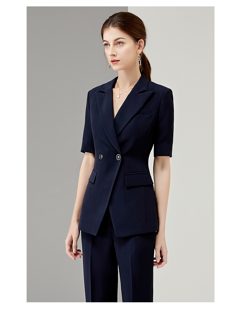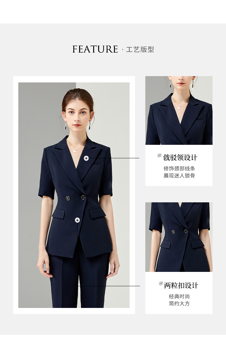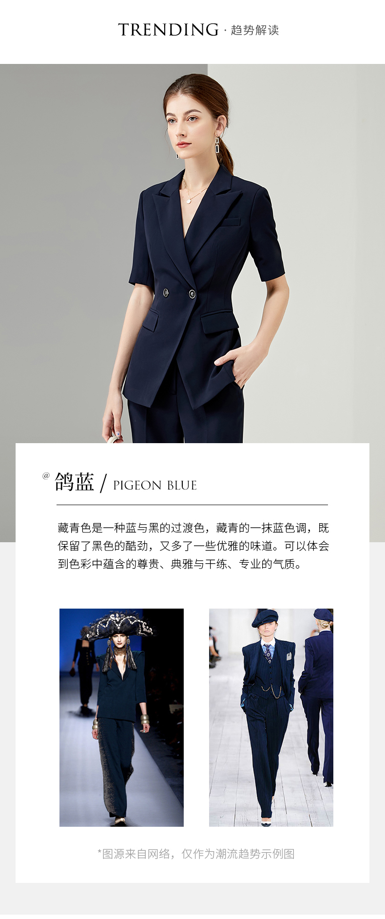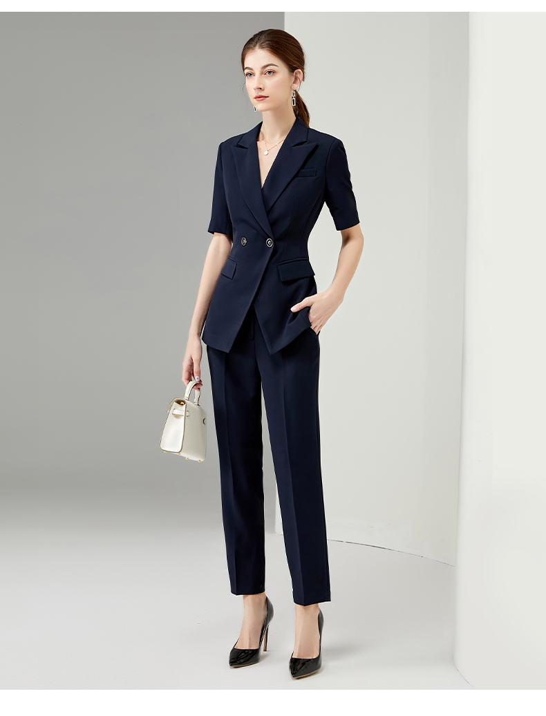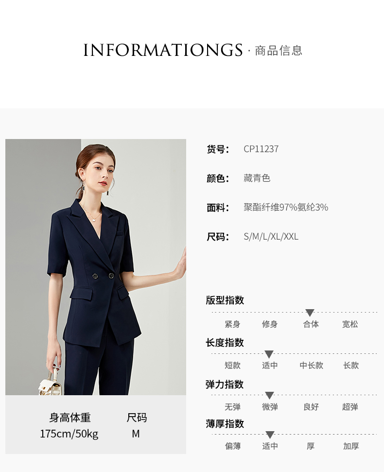 IWY/高端职业装女夏季气质藏青短袖西装套装公务员面试职业工作服正装CP11237