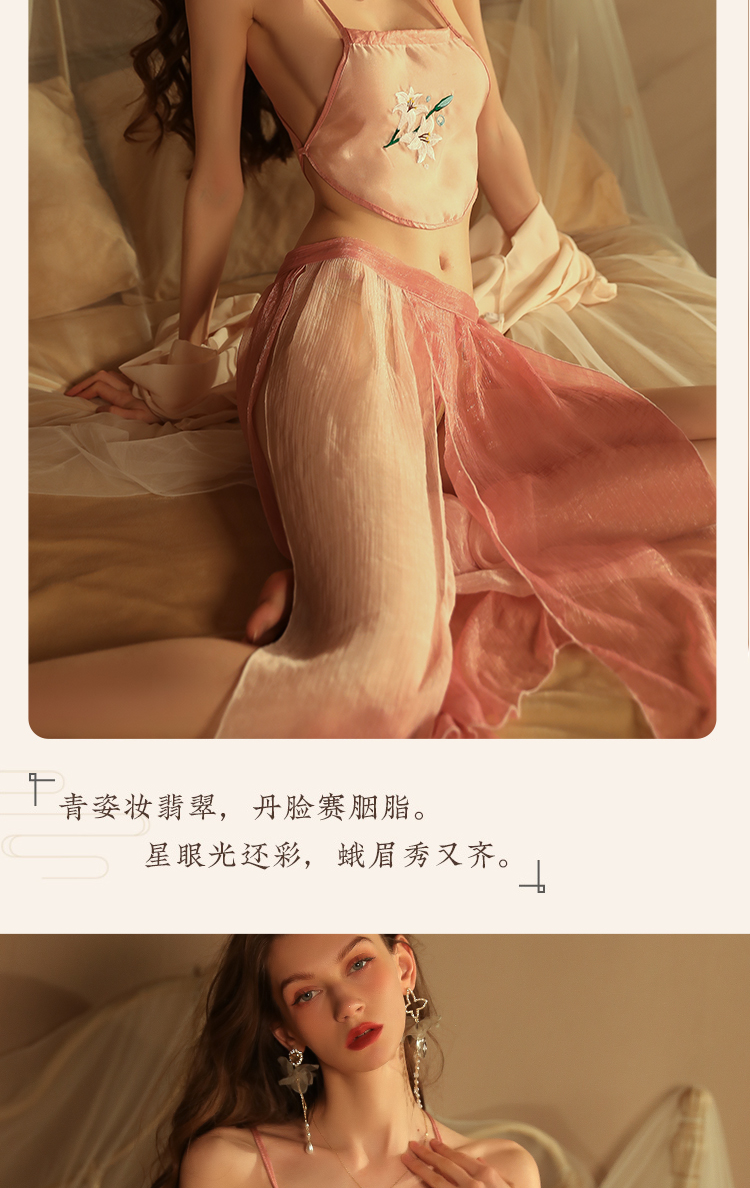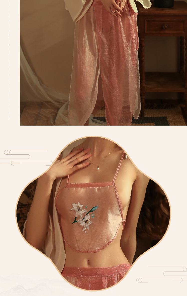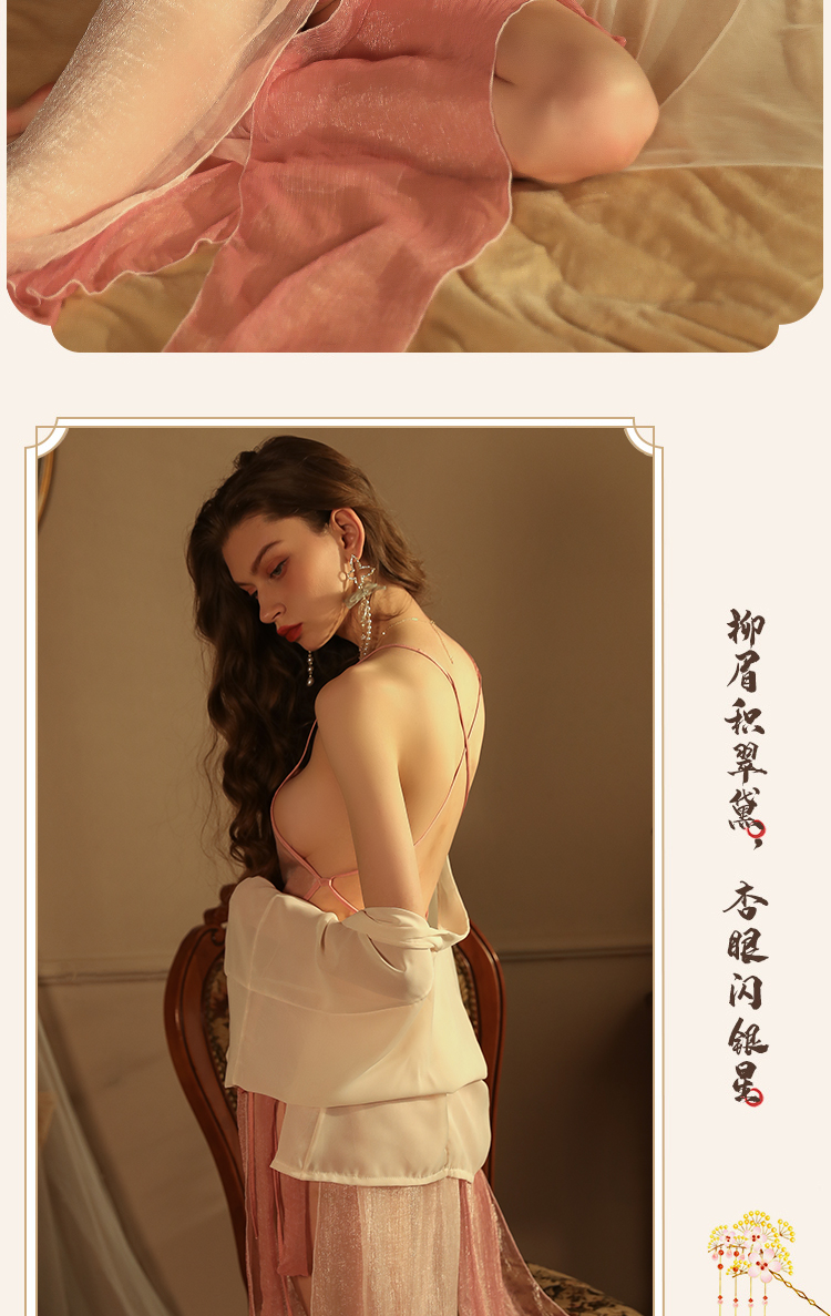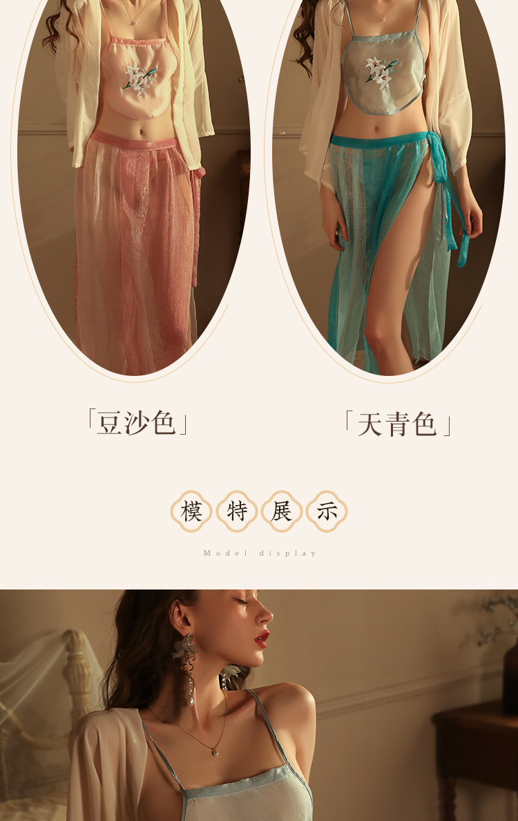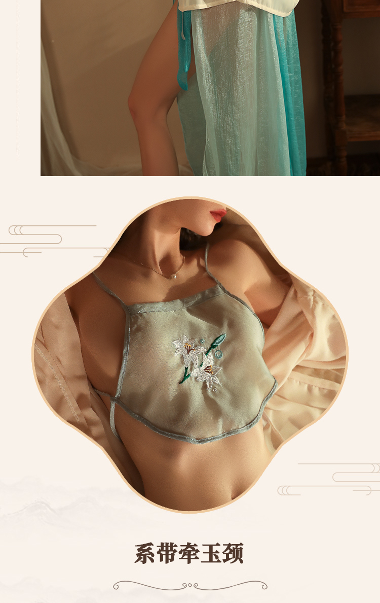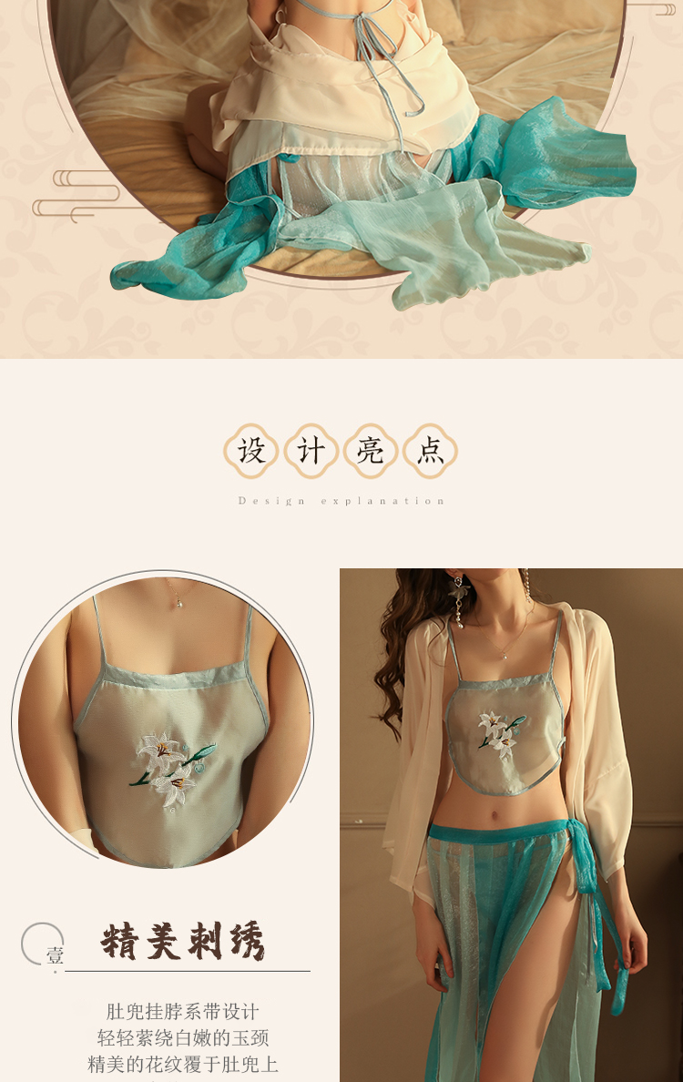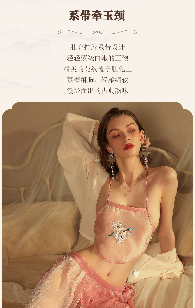 【特别款】情趣内衣 性感雪纺古风纯欲肚兜套装 诱惑 激情衣服免脱4件套