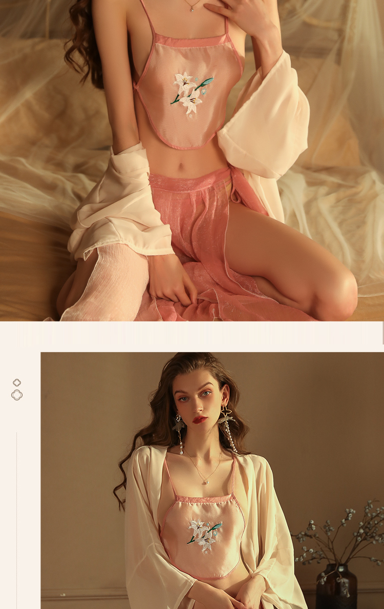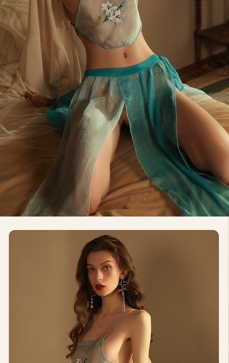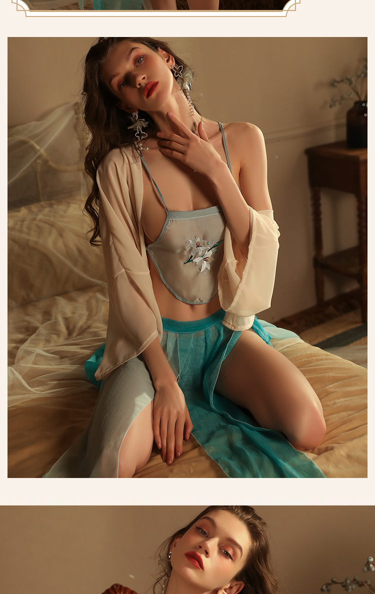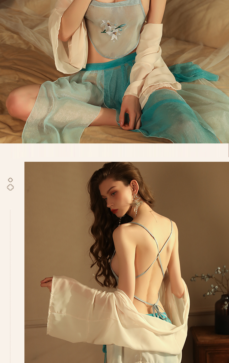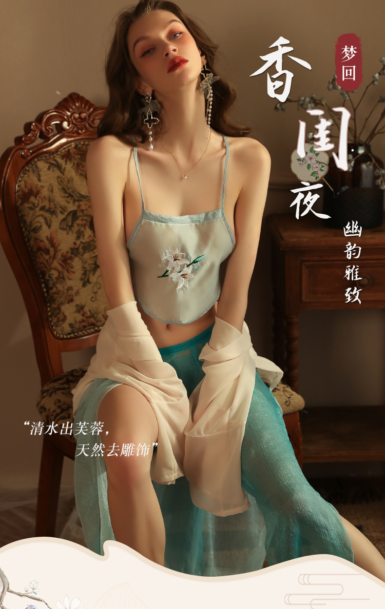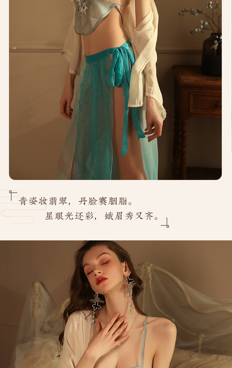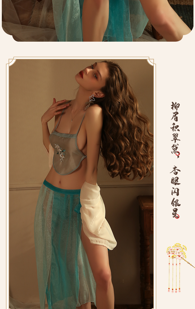 【特别款】情趣内衣 性感雪纺古风纯欲肚兜套装 诱惑 激情衣服免脱4件套