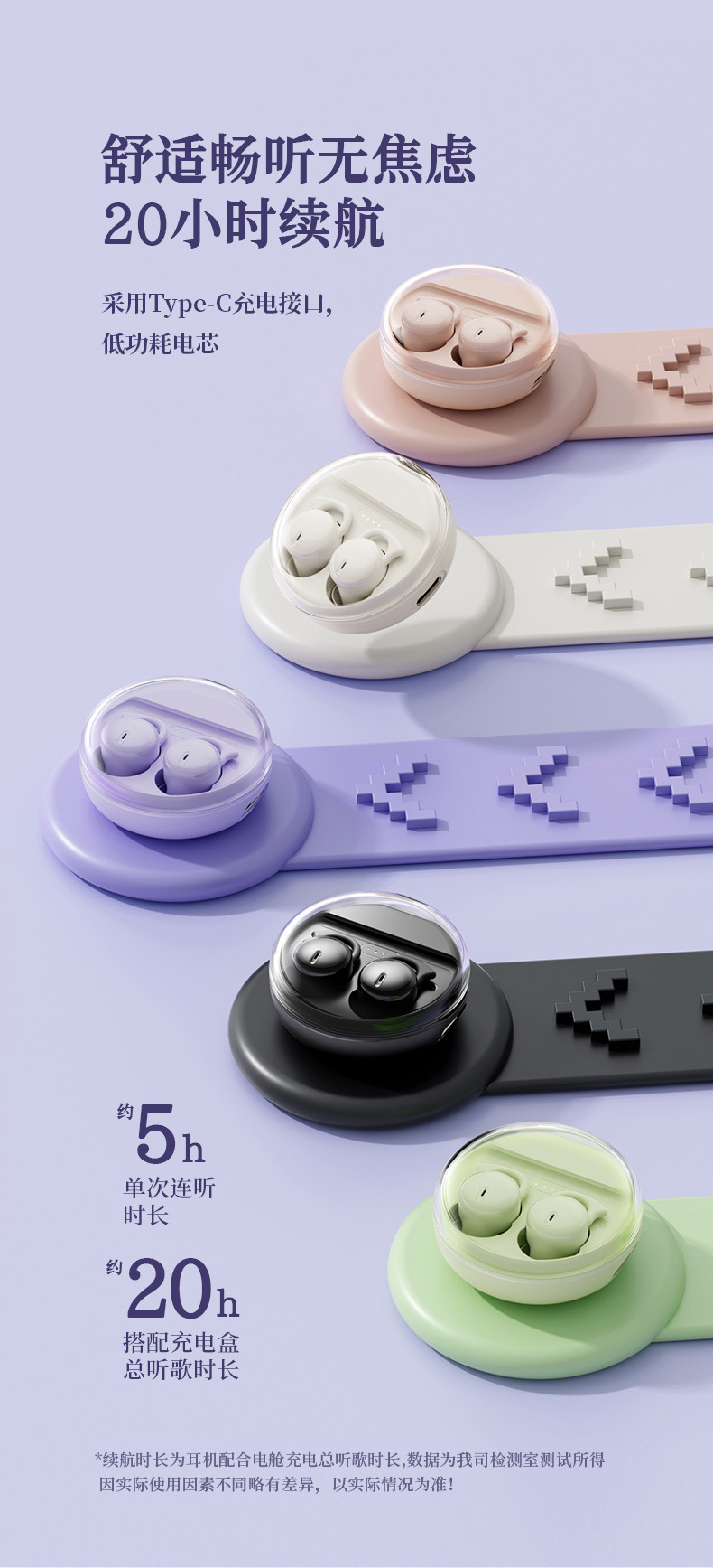 新款【小巧精致,侧睡不压耳,随心所动,助眠利器】睡眠侧睡超小迷你无线蓝牙耳机 适用女生降噪耳机入耳式!-QQ--ry