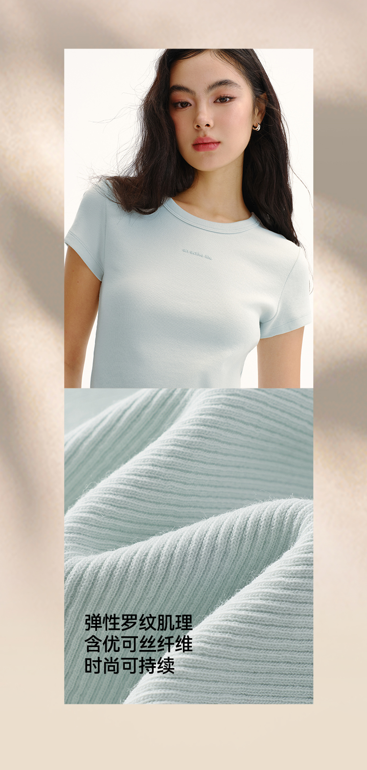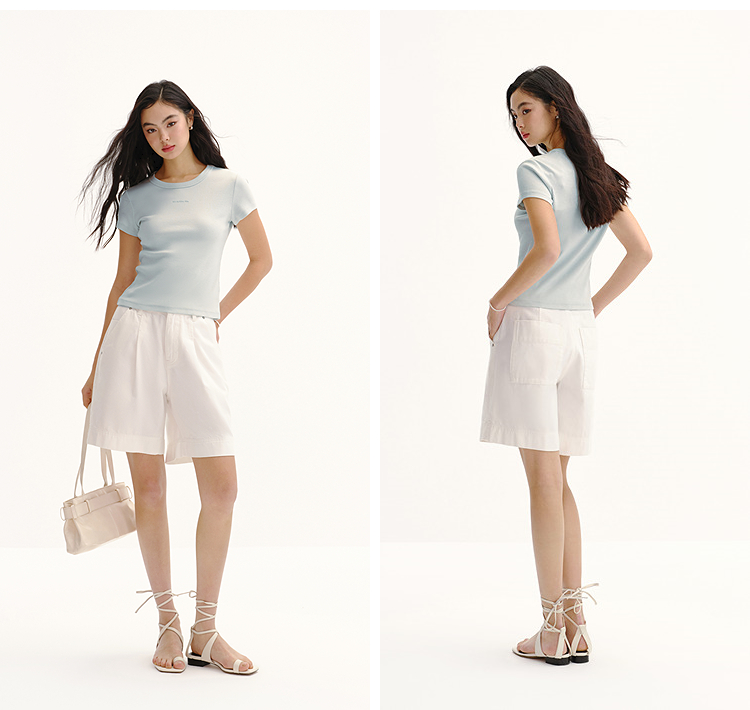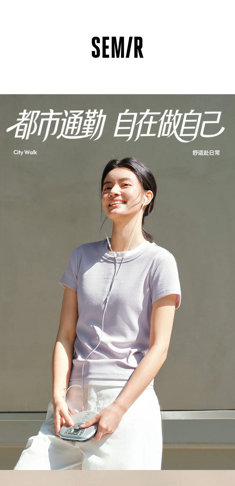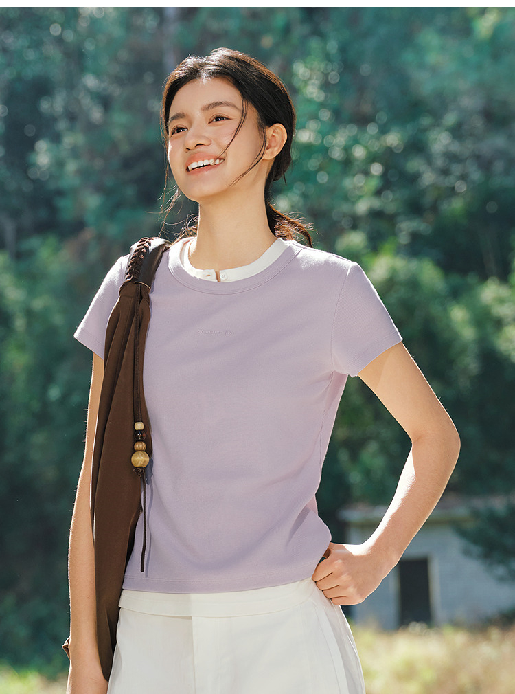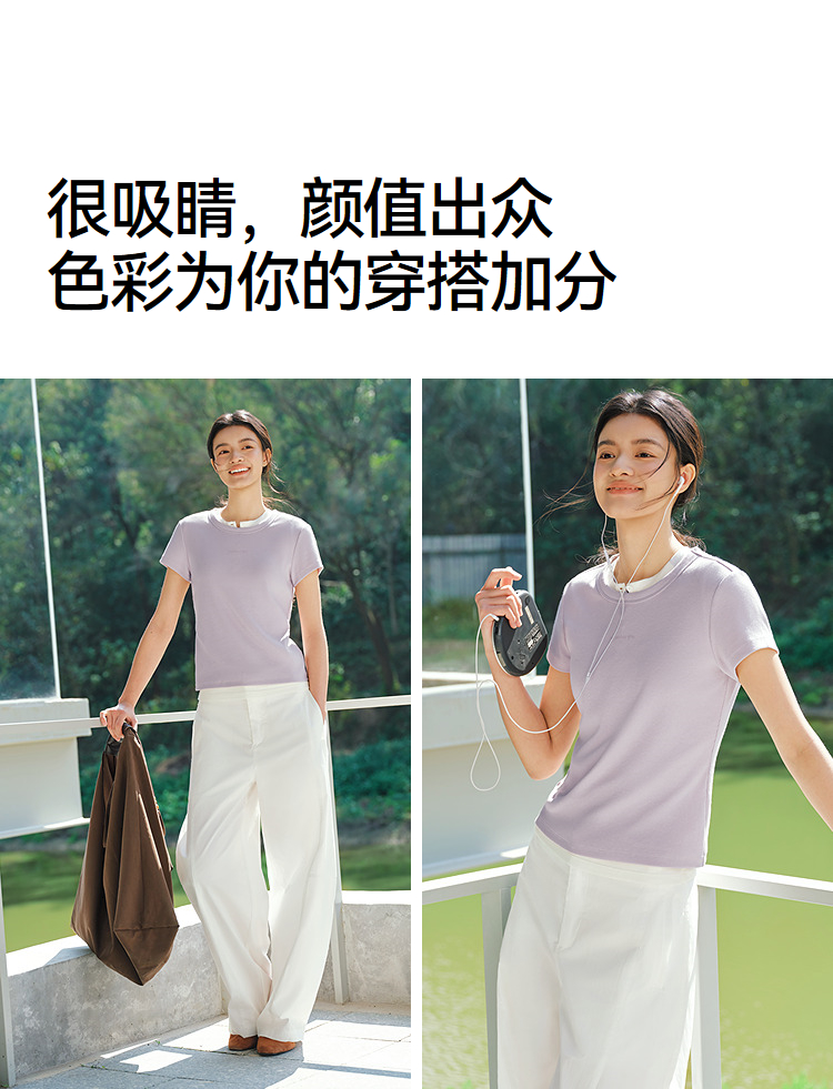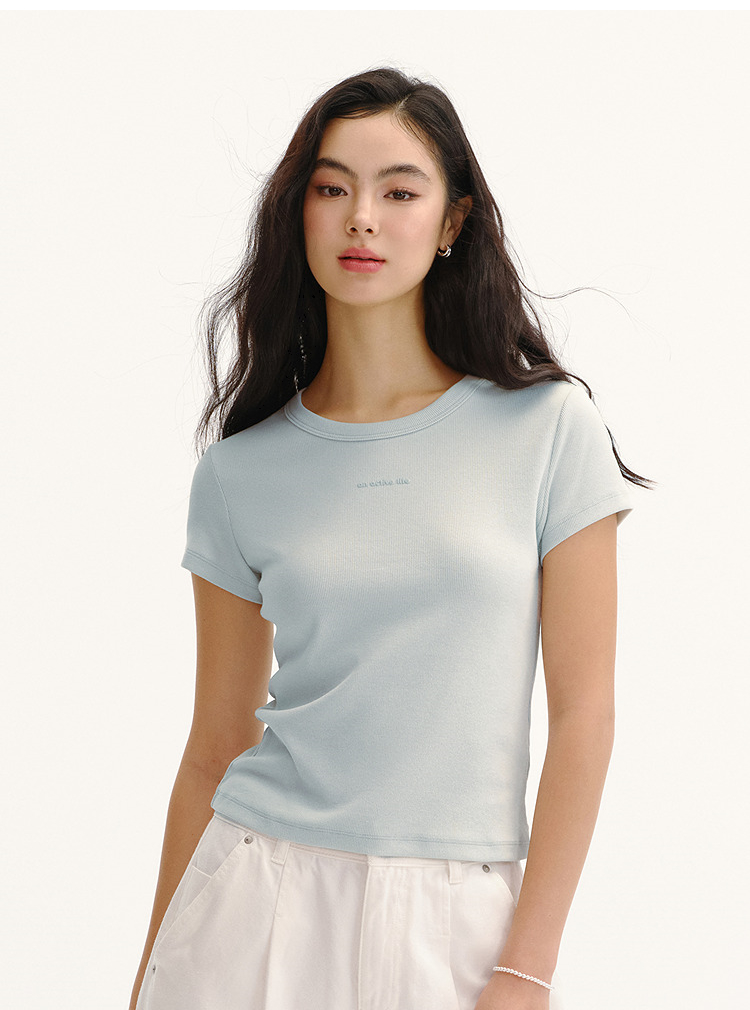 商场同款|森马短袖T恤女夏提花紧身正肩圆领字母上衣2026新款衣服