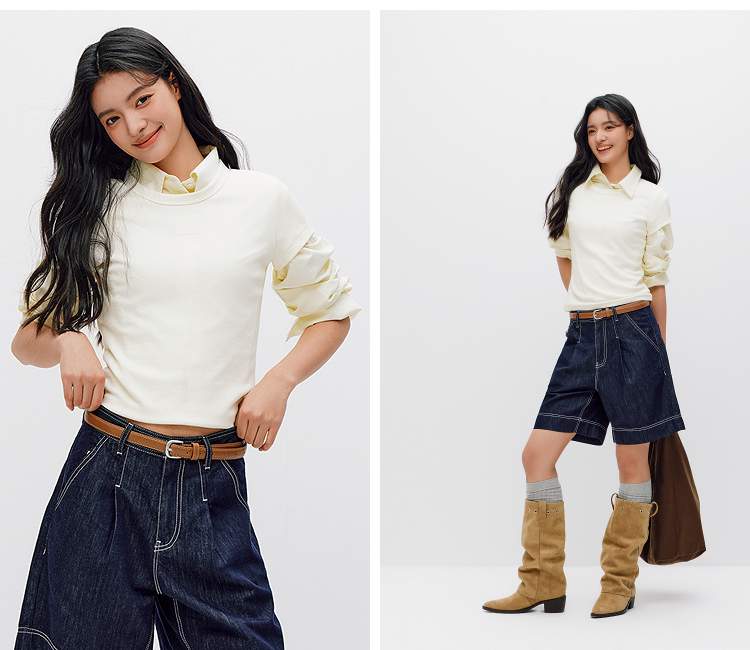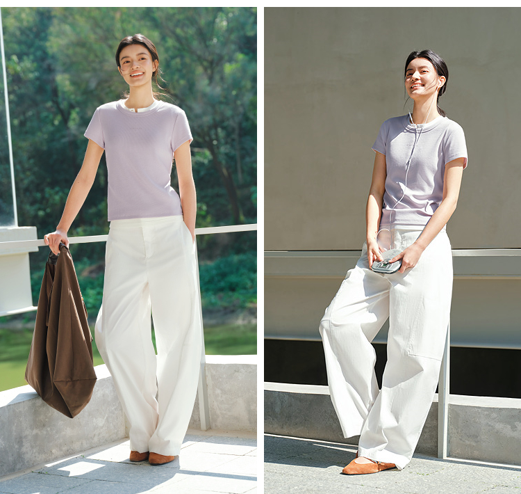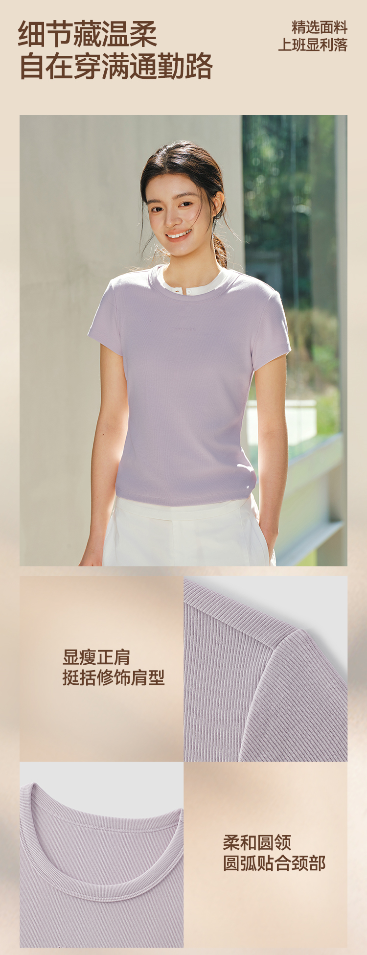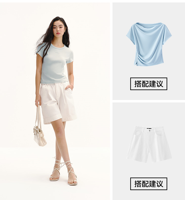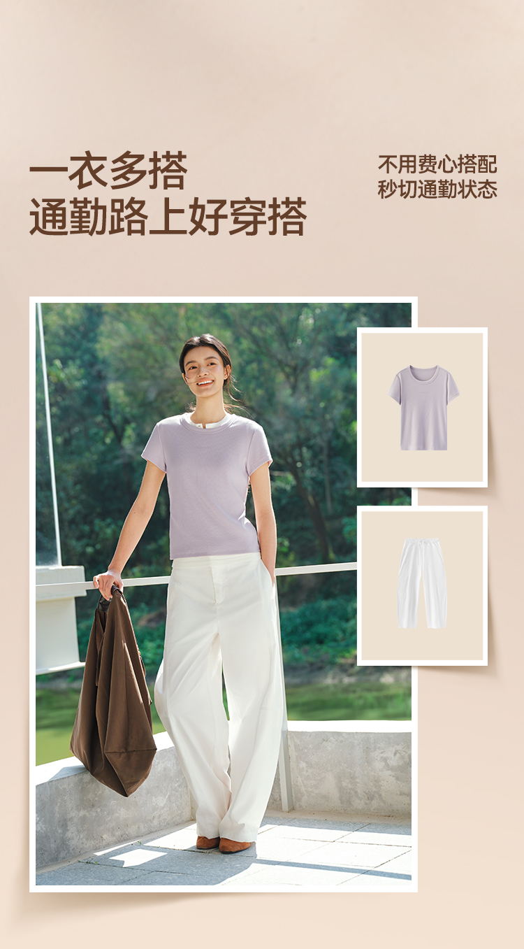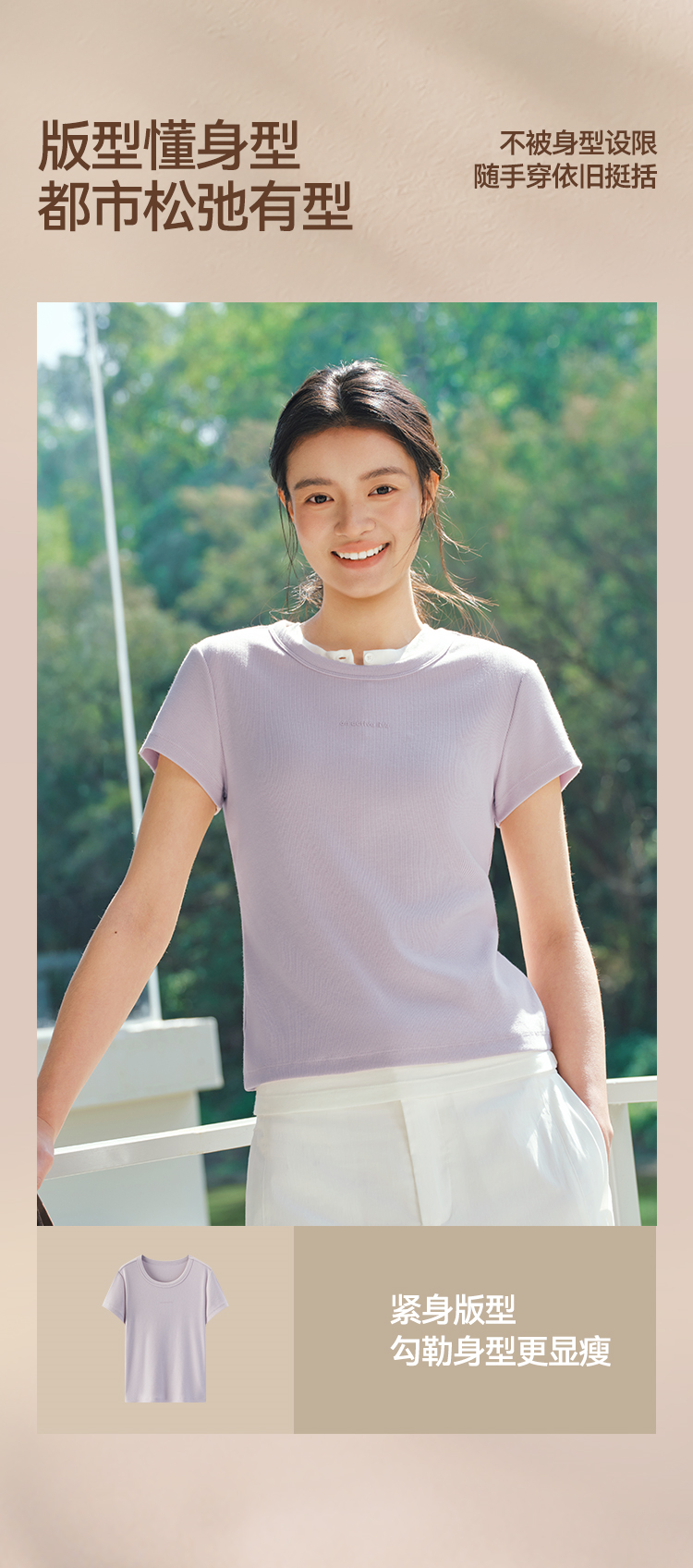 商场同款|森马短袖T恤女夏提花紧身正肩圆领字母上衣2026新款衣服