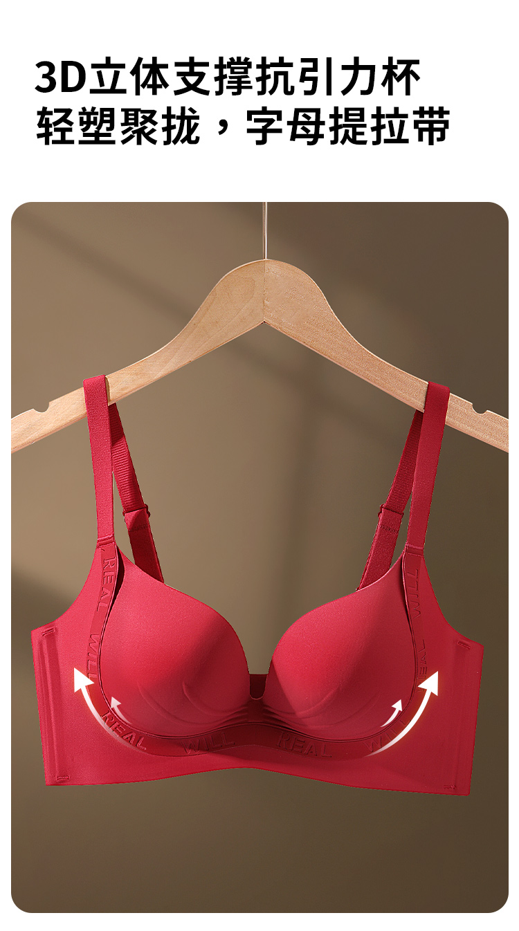 江漫霞光 文胸(VIP) 小胸聚拢不空杯无痕提拉防下垂红色内衣女收副乳无钢圈文胸罩