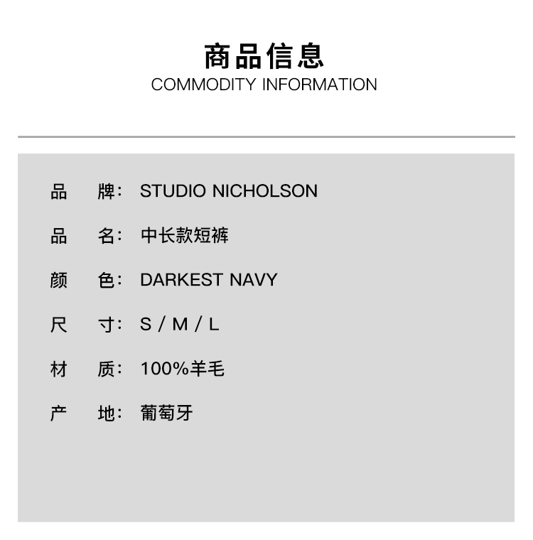 STUDIO NICHOLSON KNEE LENGTH TAILORED 男装羊毛垂坠中长款短裤