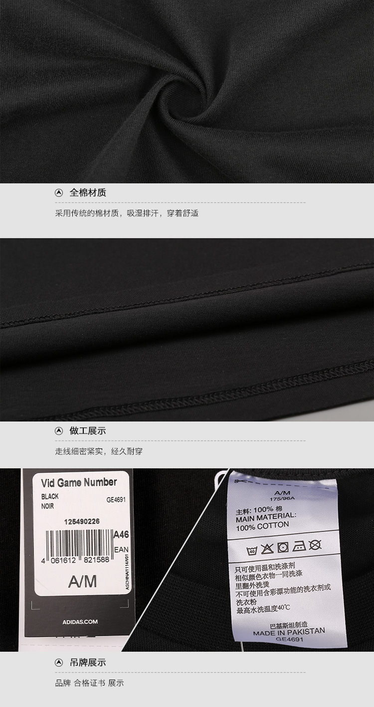 ADIDAS/阿迪达斯 电玩文化休闲运动短袖T恤GE4691
