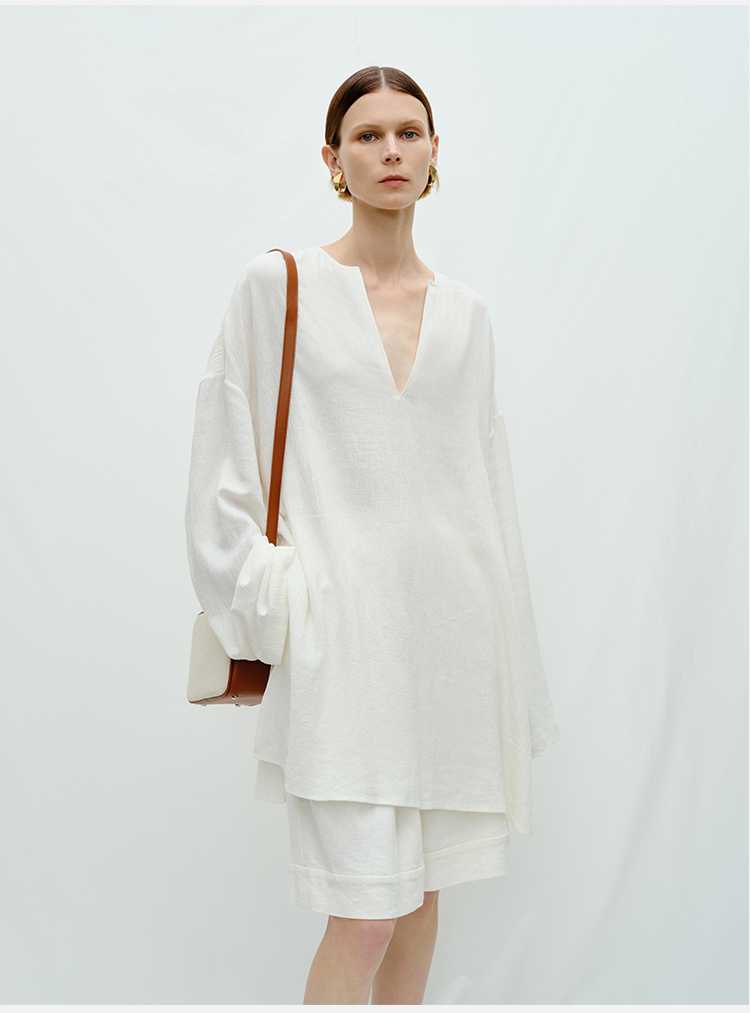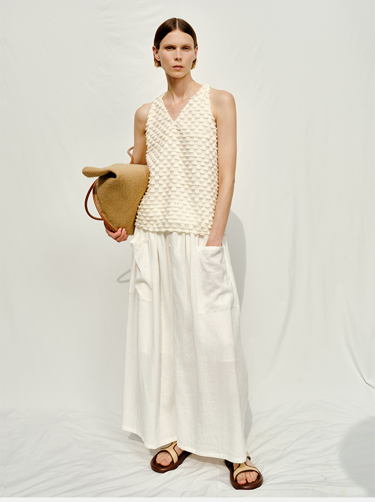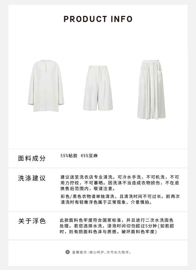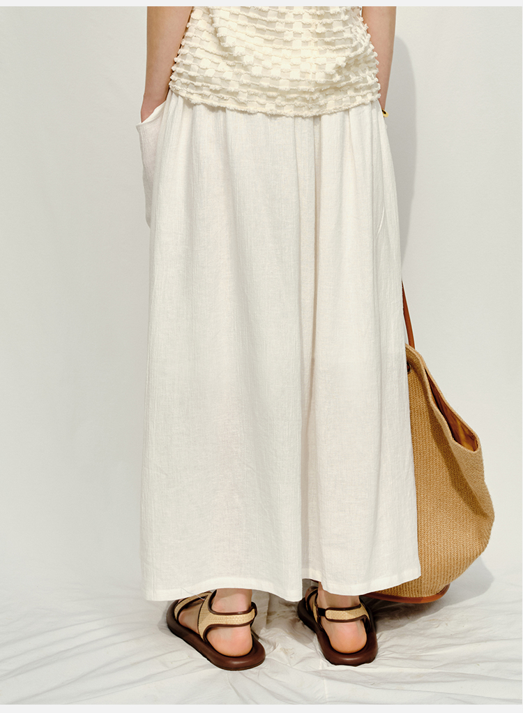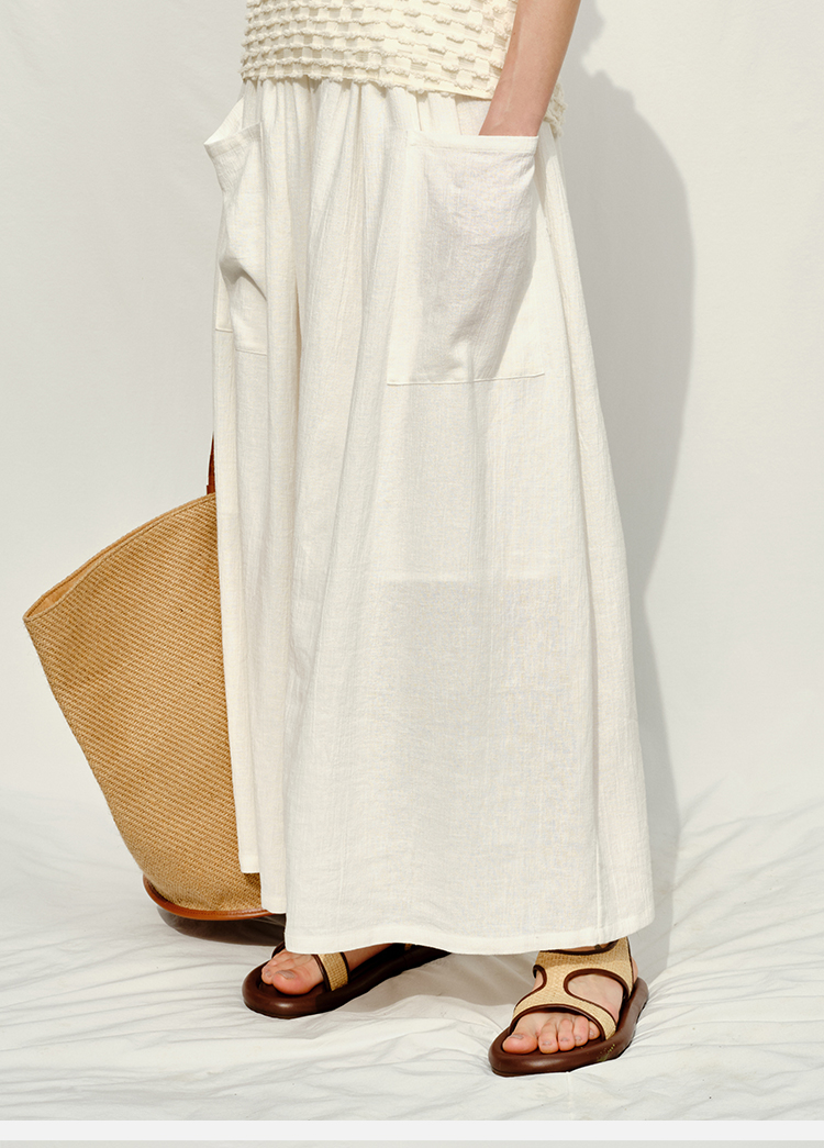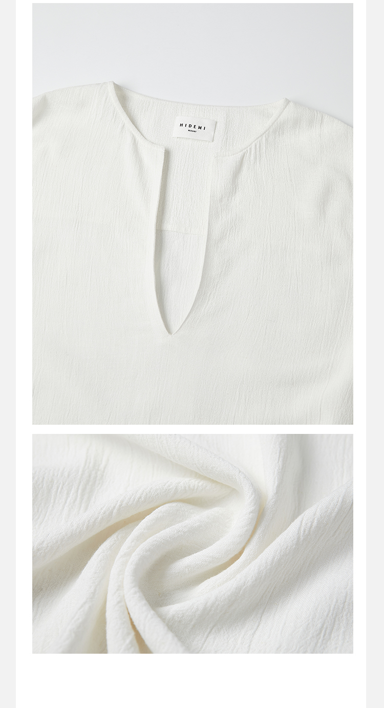 HIDEMI度假系列白色艺术感水洗亚麻阔型慵懒伞状三件套 衬衫/半身裙/中短裤