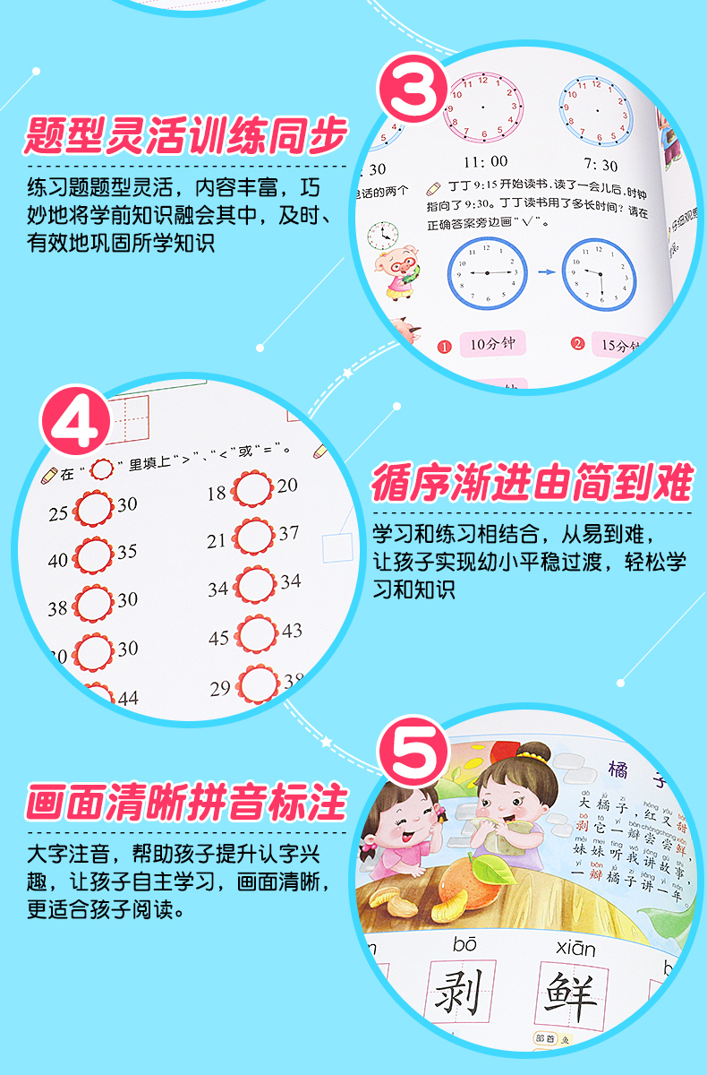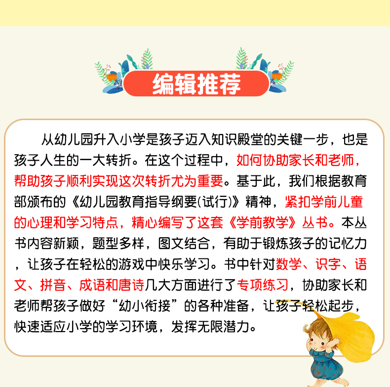 幼小衔接教材全套一日一练学前班一年级入学准备大练习学前语文数学拼音识字成语唐诗300首