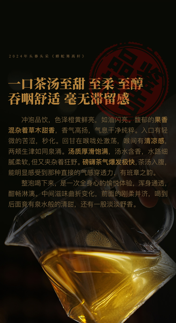 【最后2饼】【蟒蛇箐高杆】2024年头春头采高杆古树诠释易武蕞野韵味 野性入骨;能把茶喝的像喝汽水一样打嗝 357克/饼