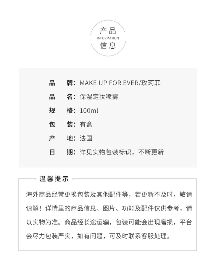 玫珂菲保湿持妆喷雾 定妆喷雾 MAKEUPFOREVER 大白喷浮生若梦