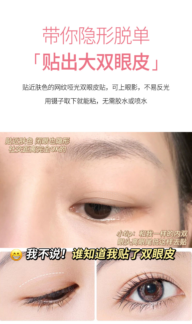 「拍1发3!9.9元3盒」媚诗霏仿真双眼皮贴 无痕自然肤色单面肿眼泡用粘性不反光美妆