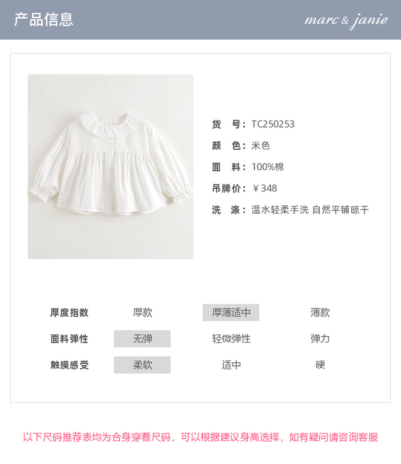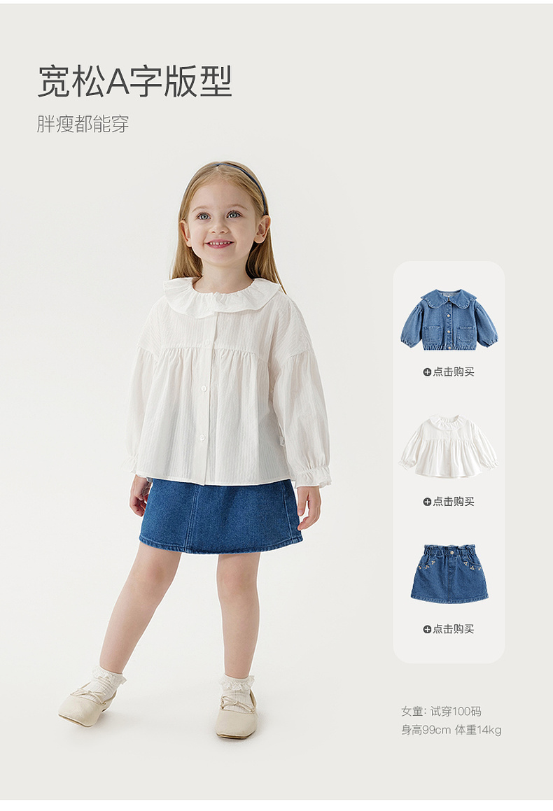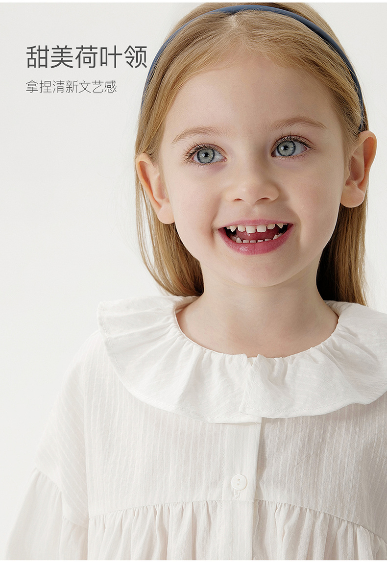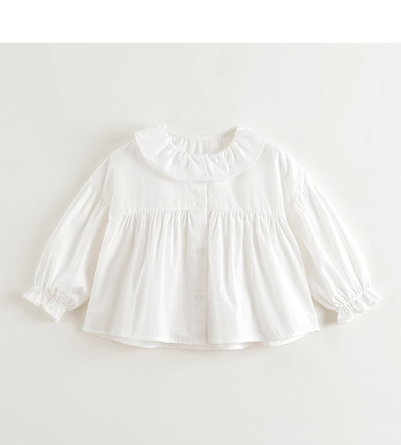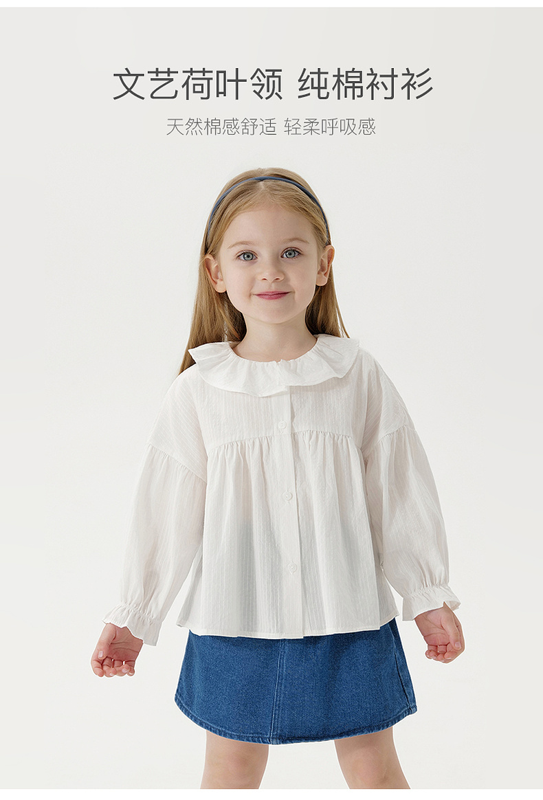 马克珍妮女童文艺荷叶领衬衫 宝宝纯棉衬衣2025年春装新款250253