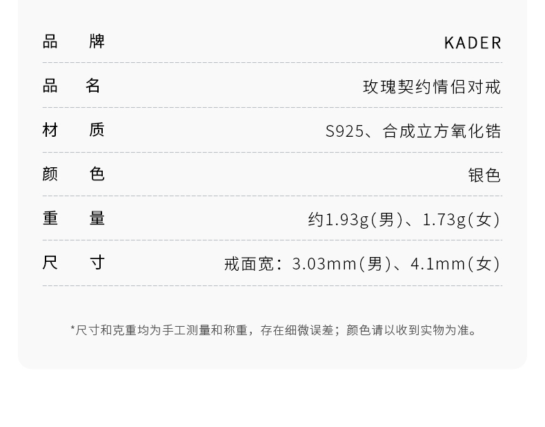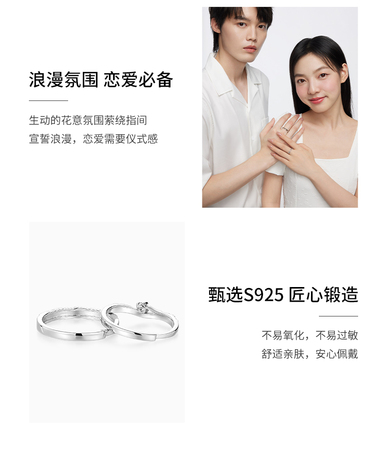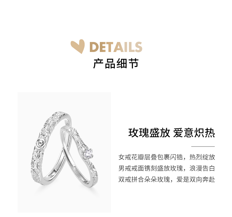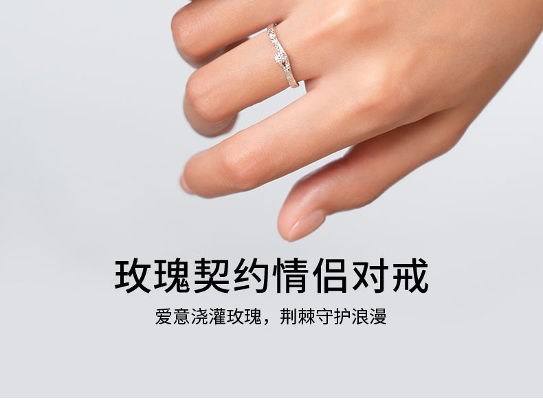 卡蒂罗KADER 玫瑰契约情侣对戒 925银 小众原创玫瑰印记浪漫韩系氛围感设计可调节一对 简约复古素圈甜蜜饰爱