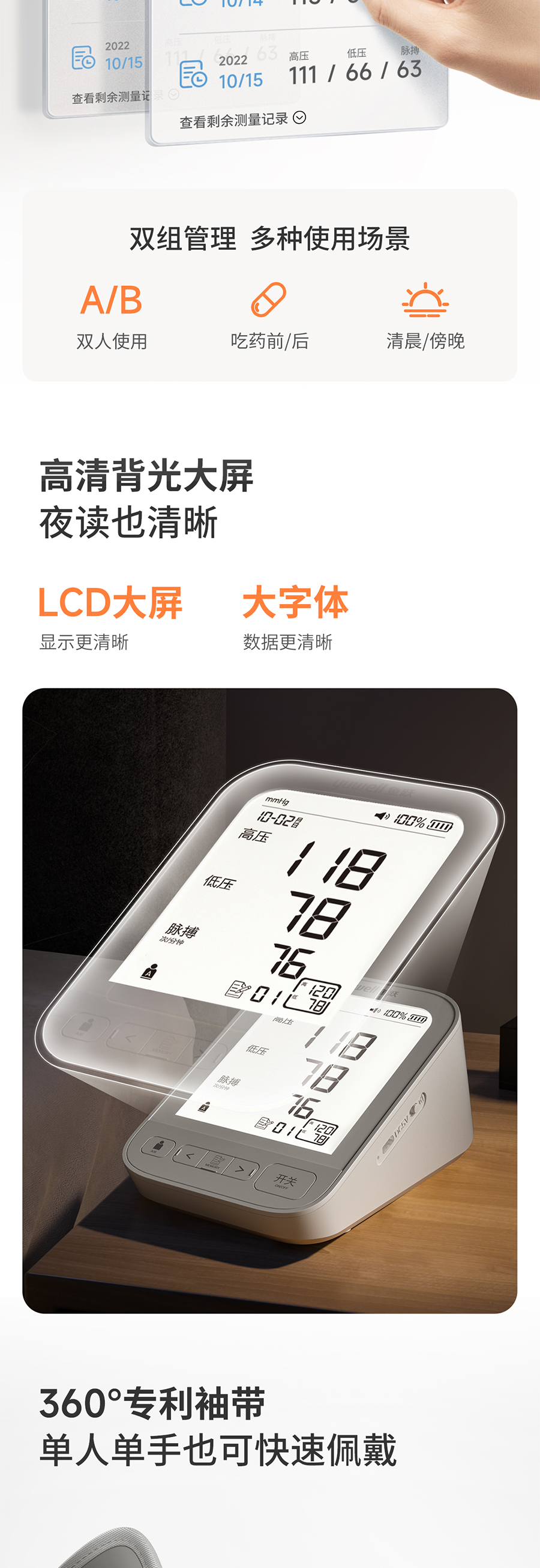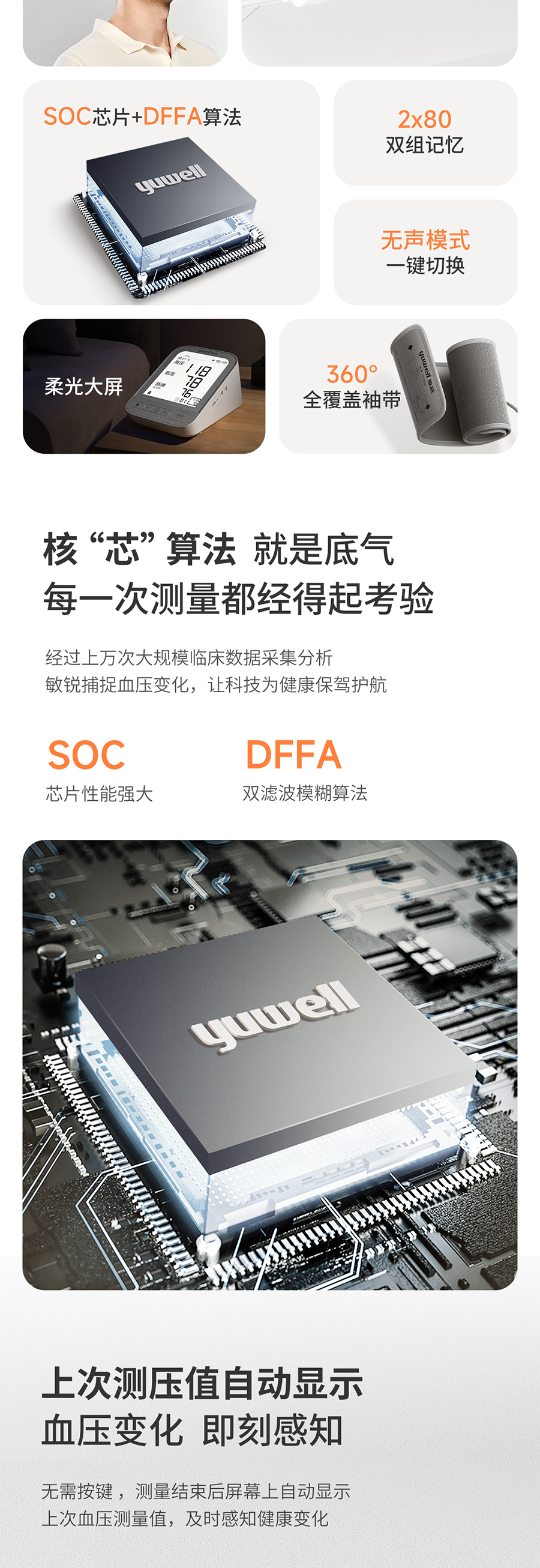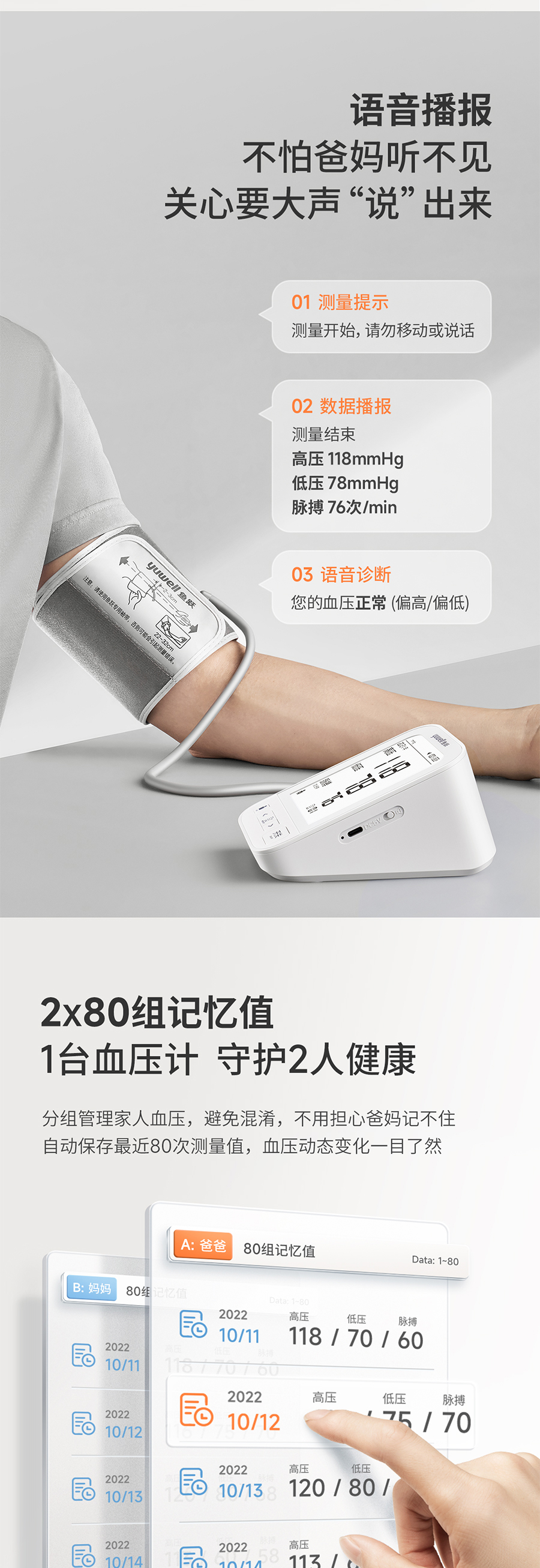 鱼跃YE690CR电子血压计上臂式大屏语音旗舰充电款