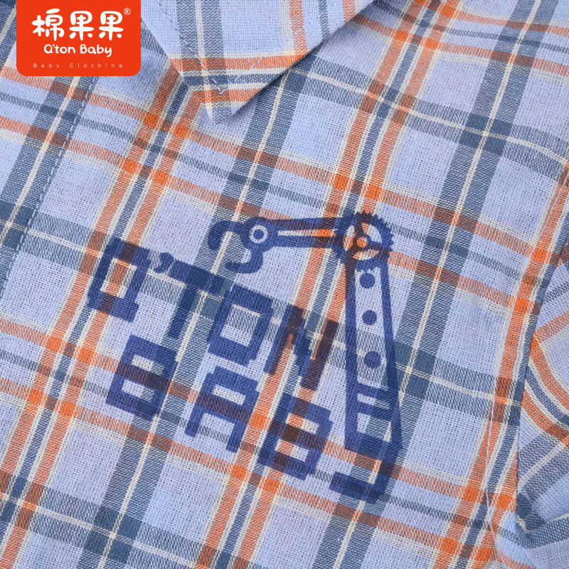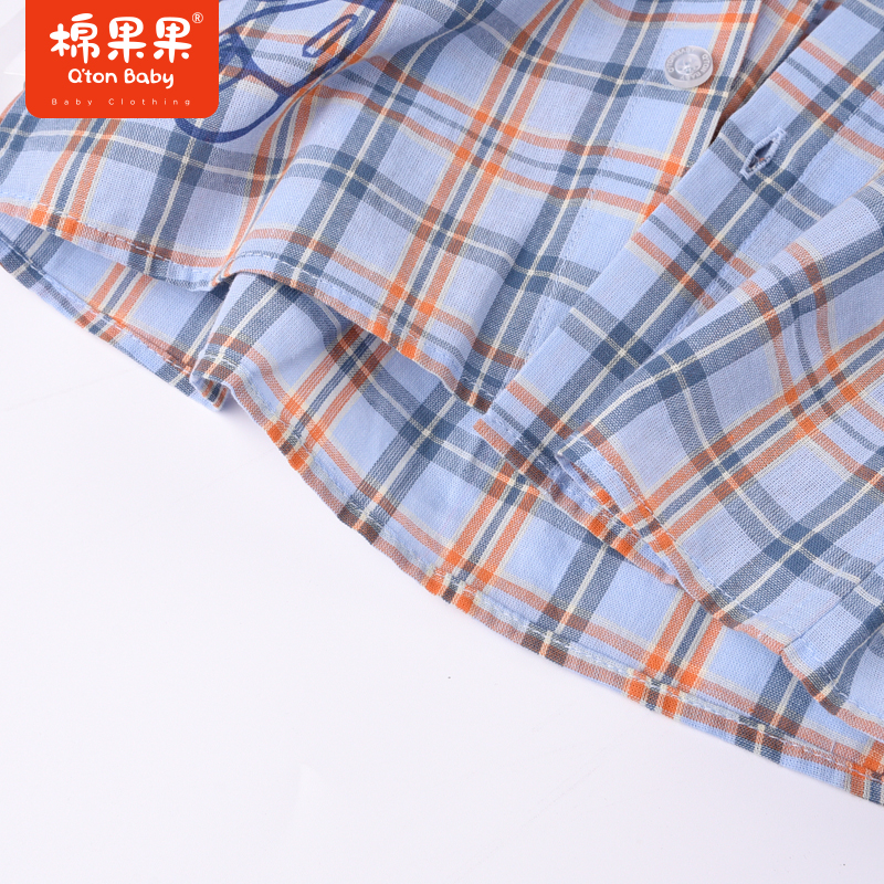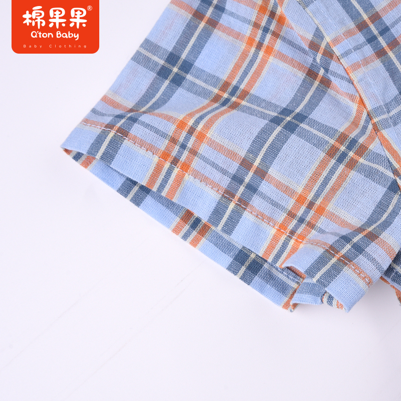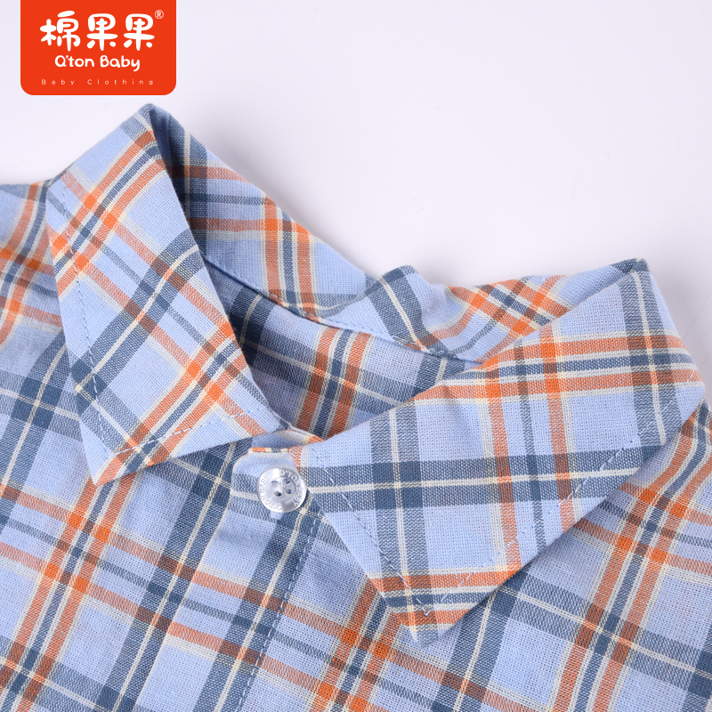 棉果果夏季男童纯棉短袖格子衬衫M212153222329