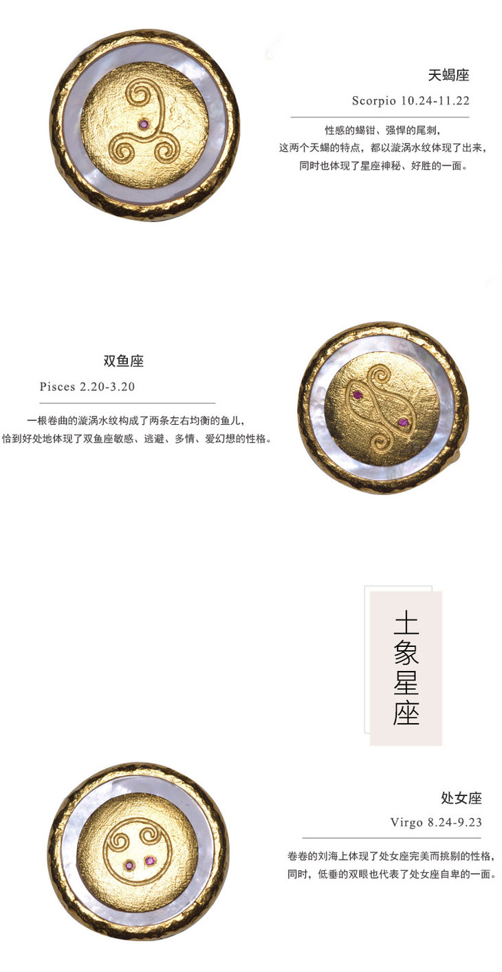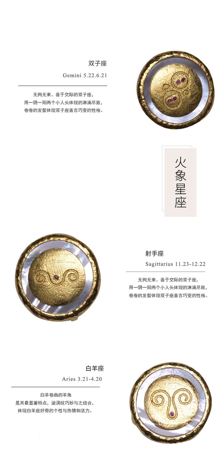 三生石红宝石十二星座贝壳版胸针吊坠袖扣