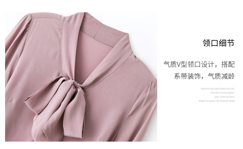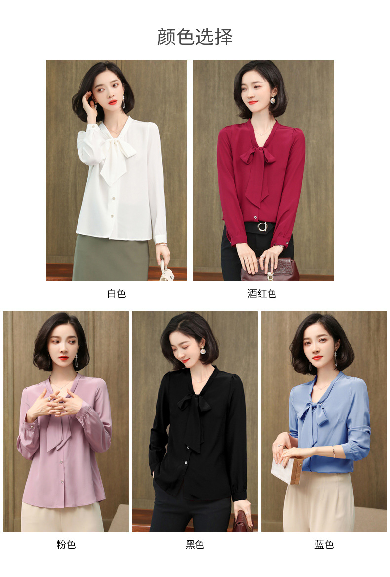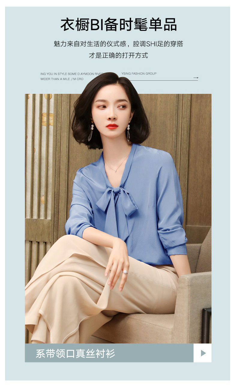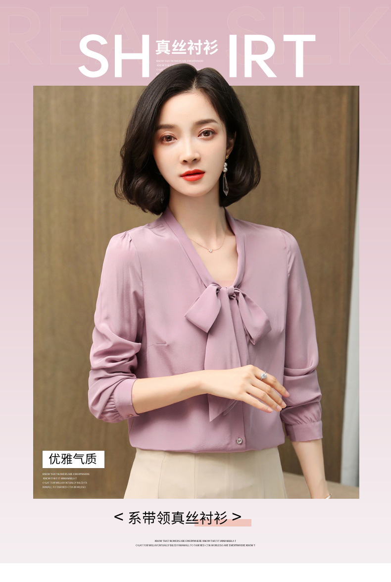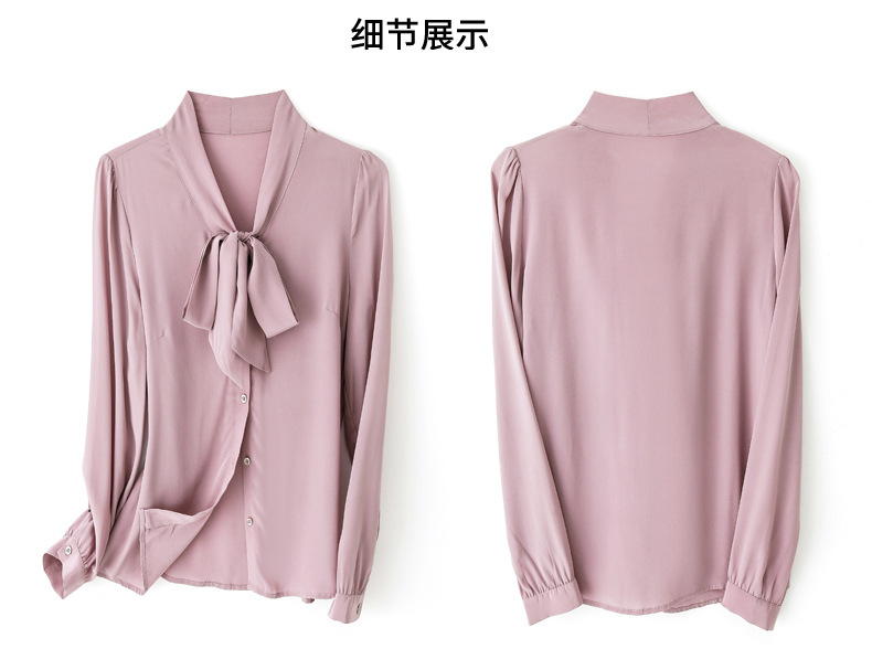 真丝衬衫女装双绉设计感小众蝴蝶结飘带宽松桑蚕丝长袖真丝女衬衫 商品图4