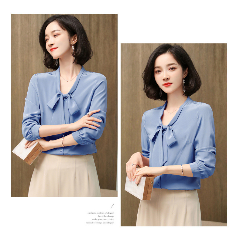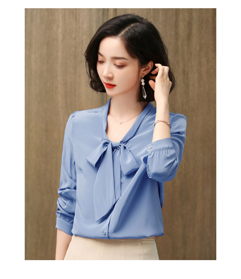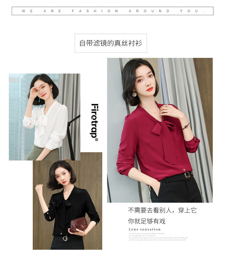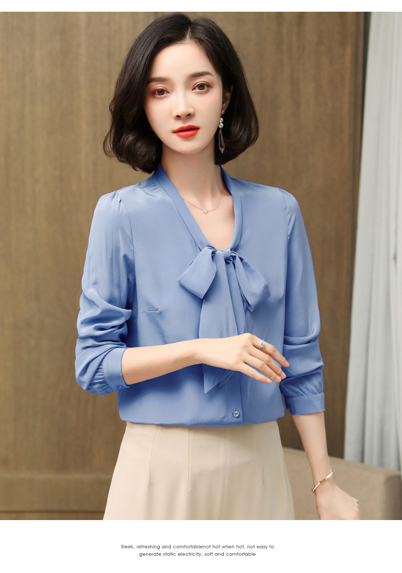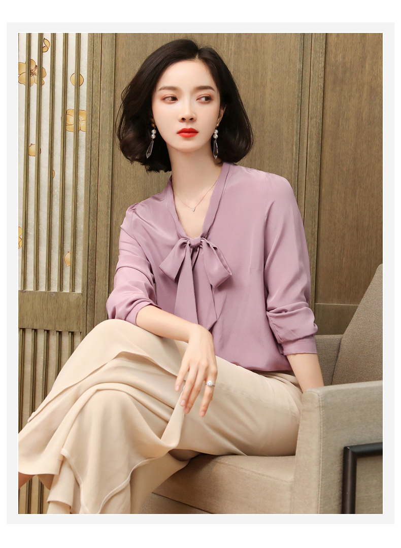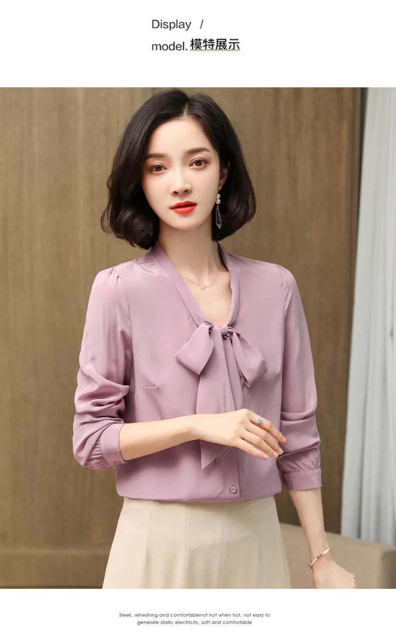 真丝衬衫女装双绉设计感小众蝴蝶结飘带宽松桑蚕丝长袖真丝女衬衫 商品图4