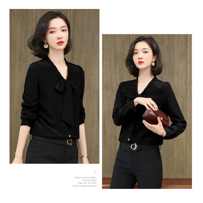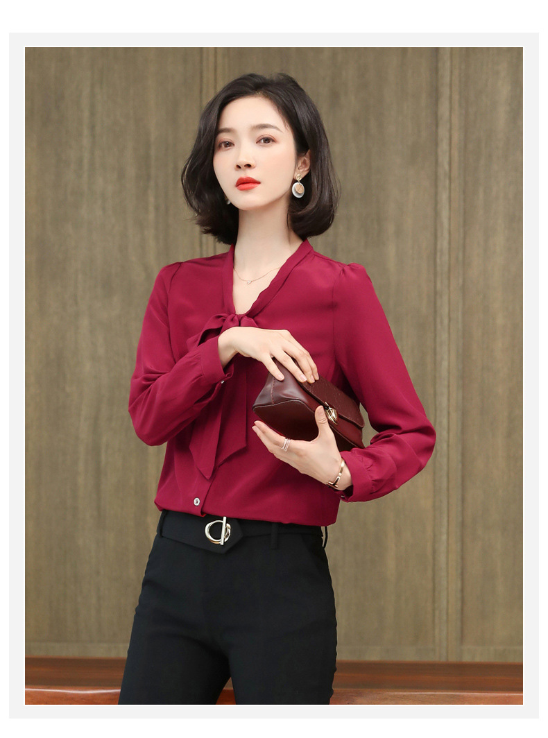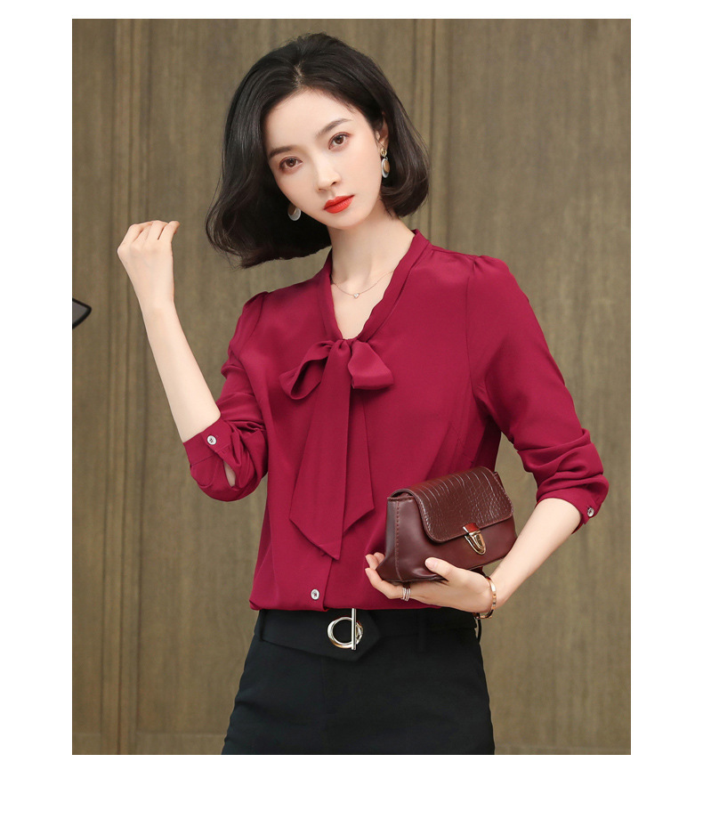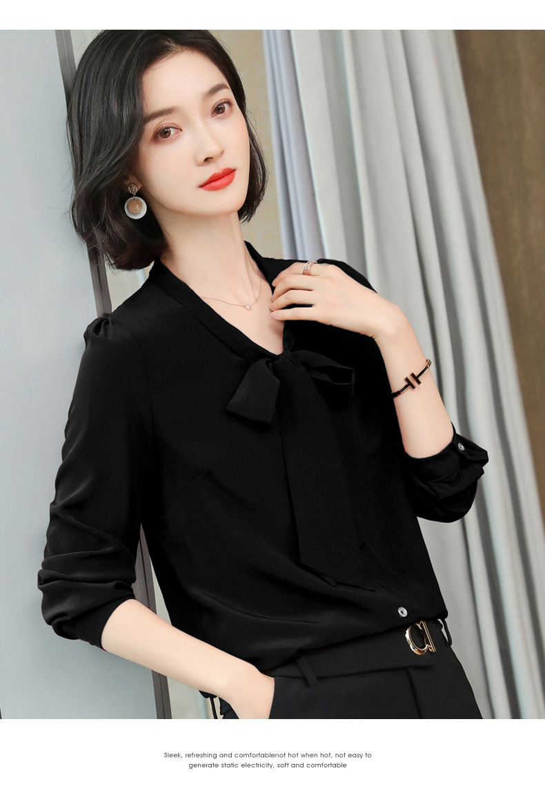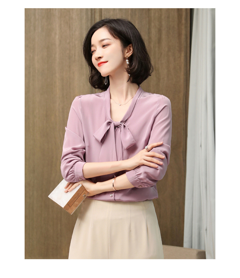 真丝衬衫女装双绉设计感小众蝴蝶结飘带宽松桑蚕丝长袖真丝女衬衫 商品图4