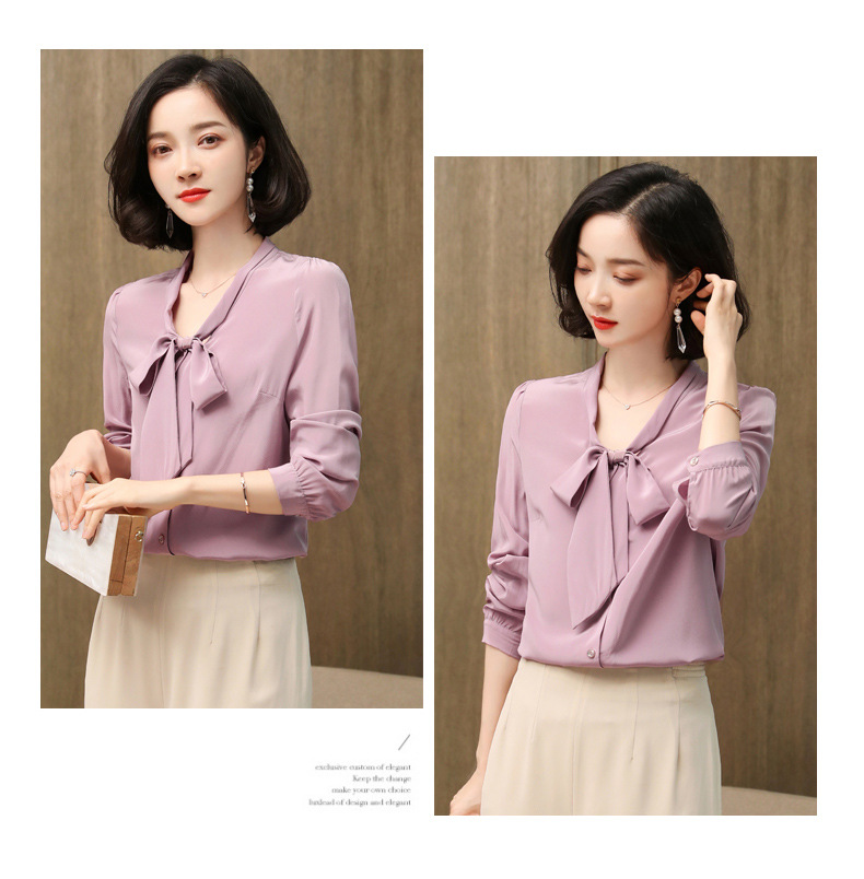 真丝衬衫女装双绉设计感小众蝴蝶结飘带宽松桑蚕丝长袖真丝女衬衫