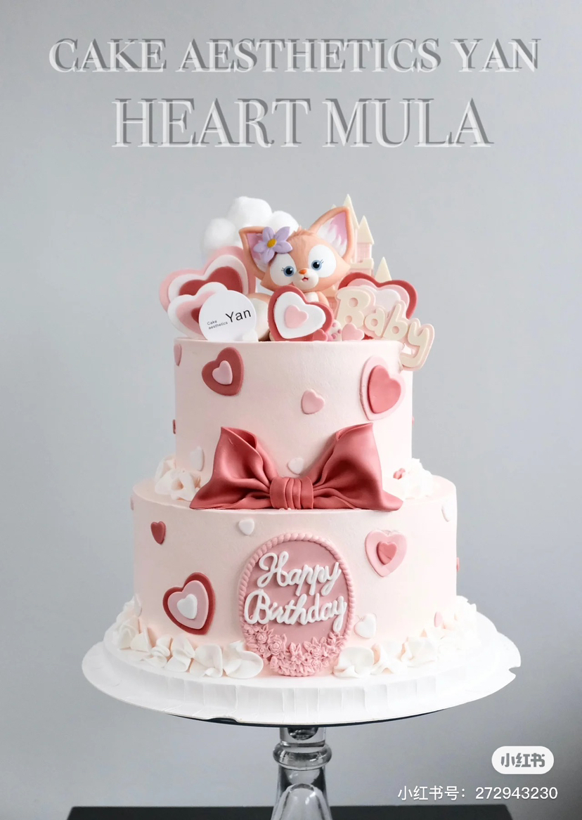 林娜贝尔留住美好时光,川沙妲己粉色小狐狸主题蛋糕,8+6寸双层蛋糕,部分配饰随机调整