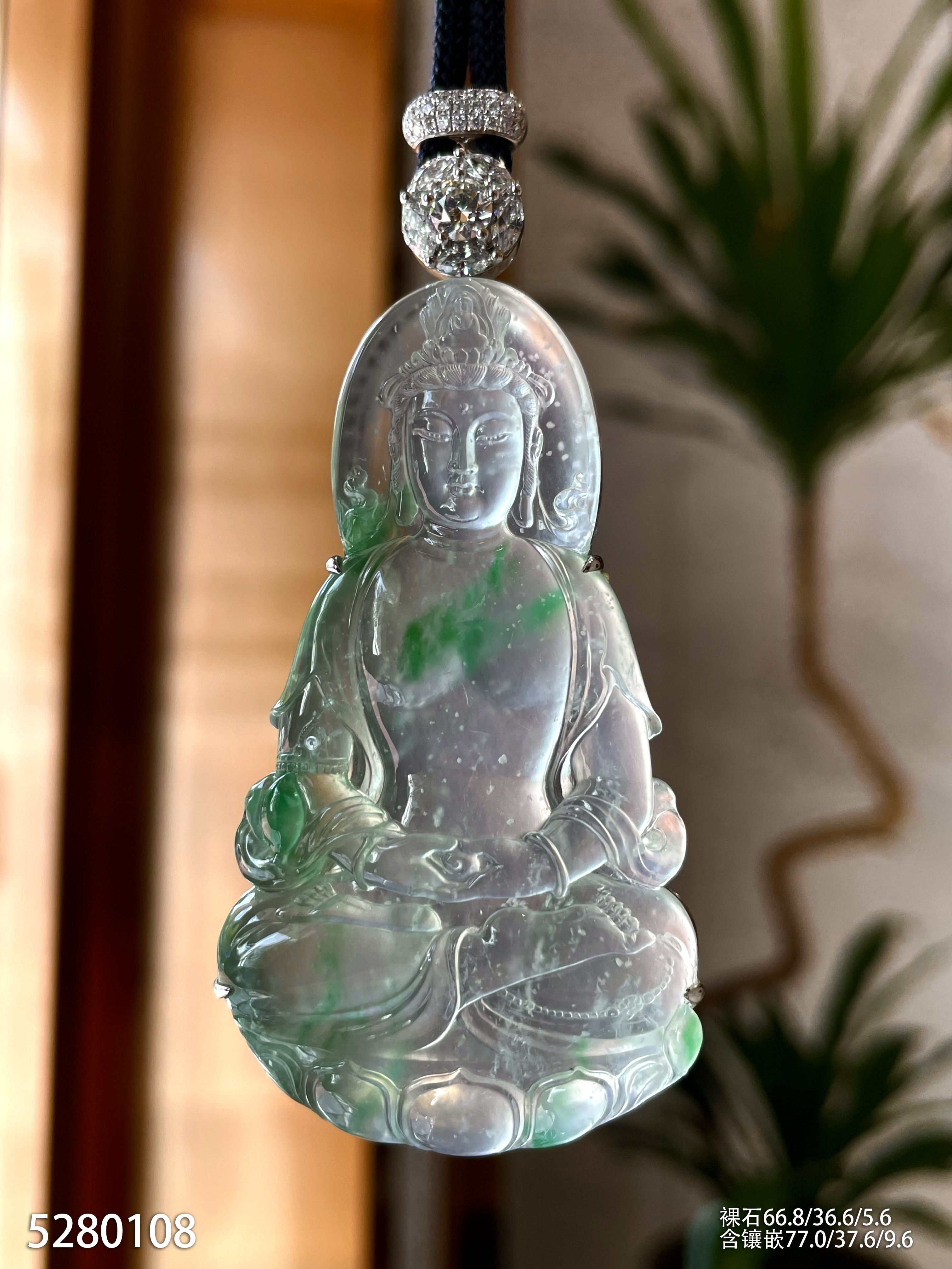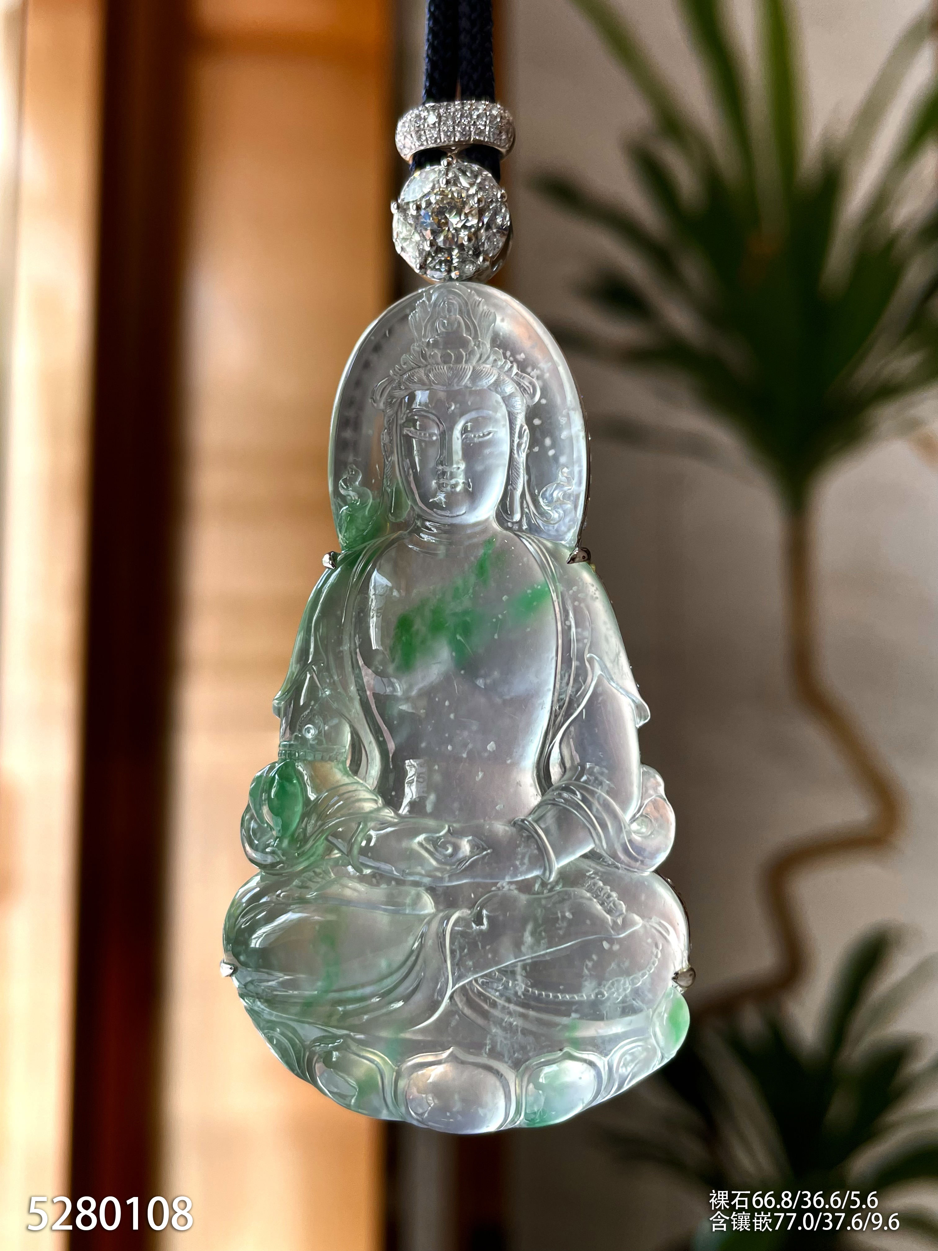 玻璃种木那飘翠观音吊坠【5280108】具体价格微信咨询