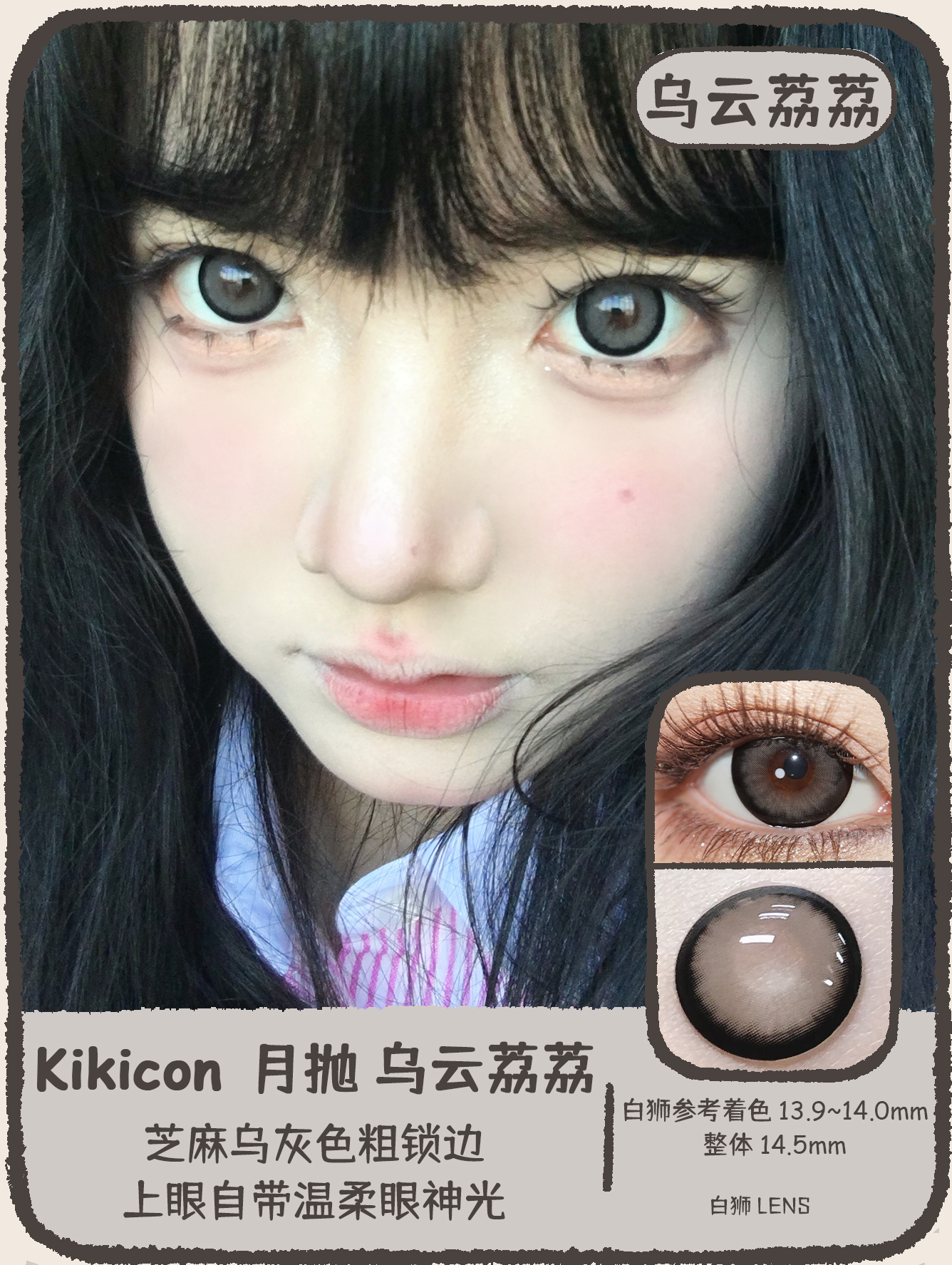 Kikicon旗下 ·月抛 酒心可可&乌云荔荔 14.5mm白狮参考着色大直径|2片