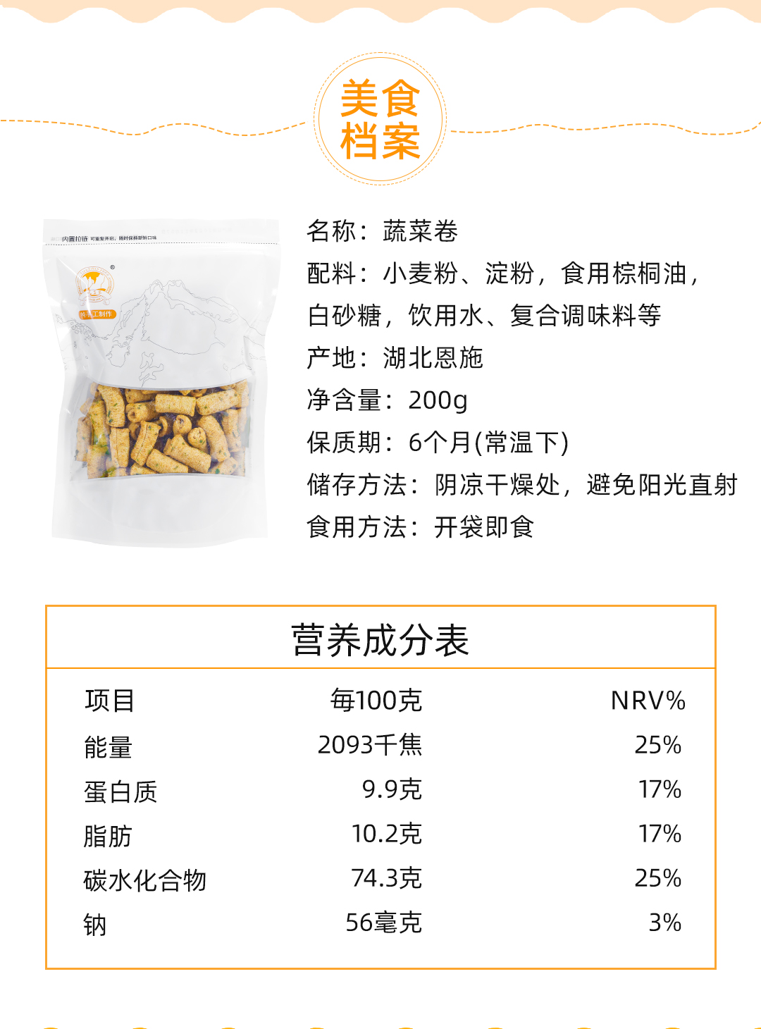 巴东鄂有好货天子岩香酥脆爽蔬菜卷200g