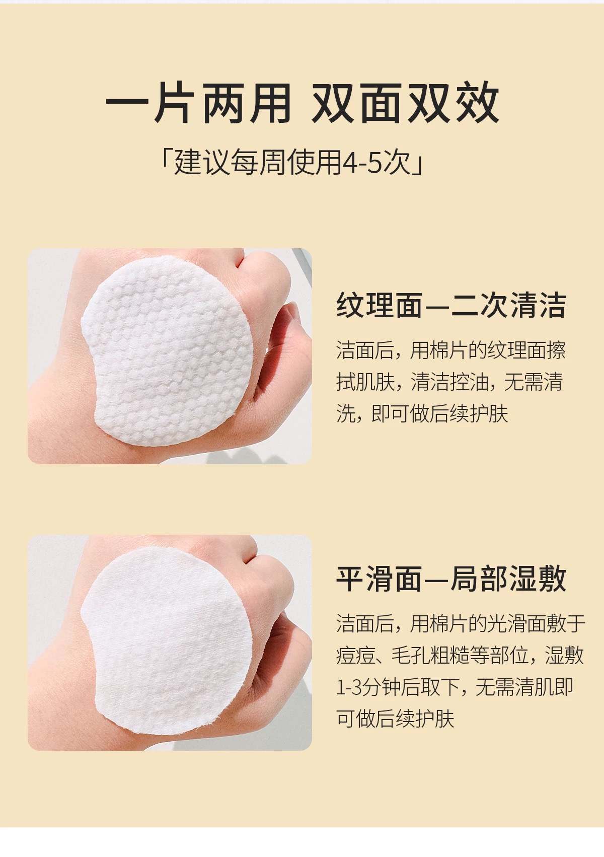 ️日常|二次清洁用法:用纹理的一面擦拭面部,初次刷酸可以隔天用一次,或每天晚上一次