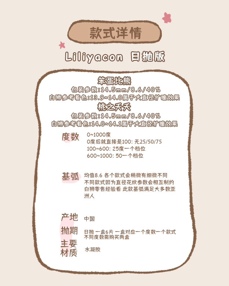 liliyacon日抛6片 · 笨蛋比熊&桃之夭夭· 14.5mm白狮参考着色大直径