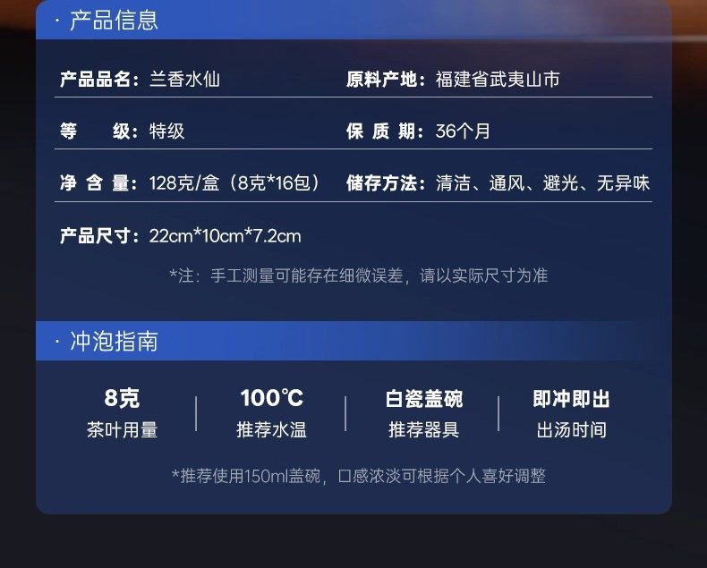 华祥苑 星时光 特级 兰香水仙 武夷岩茶 茶叶 128g