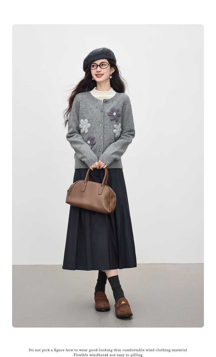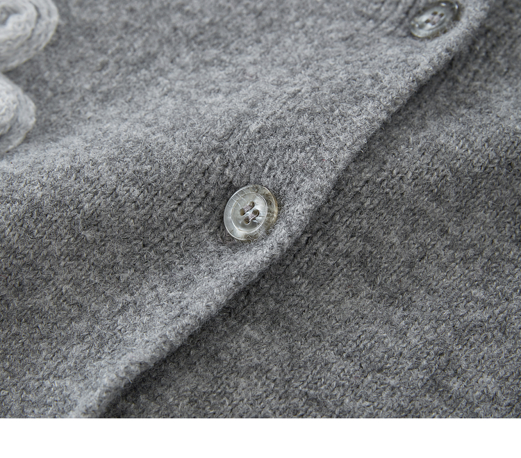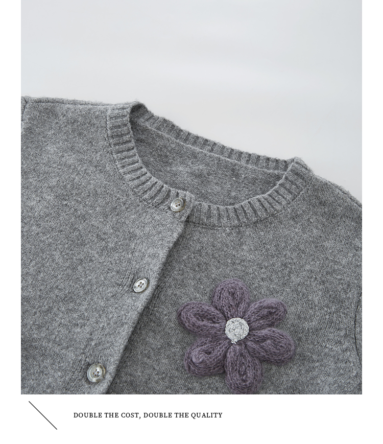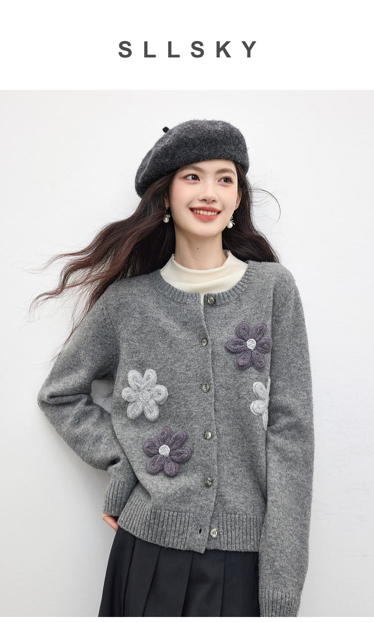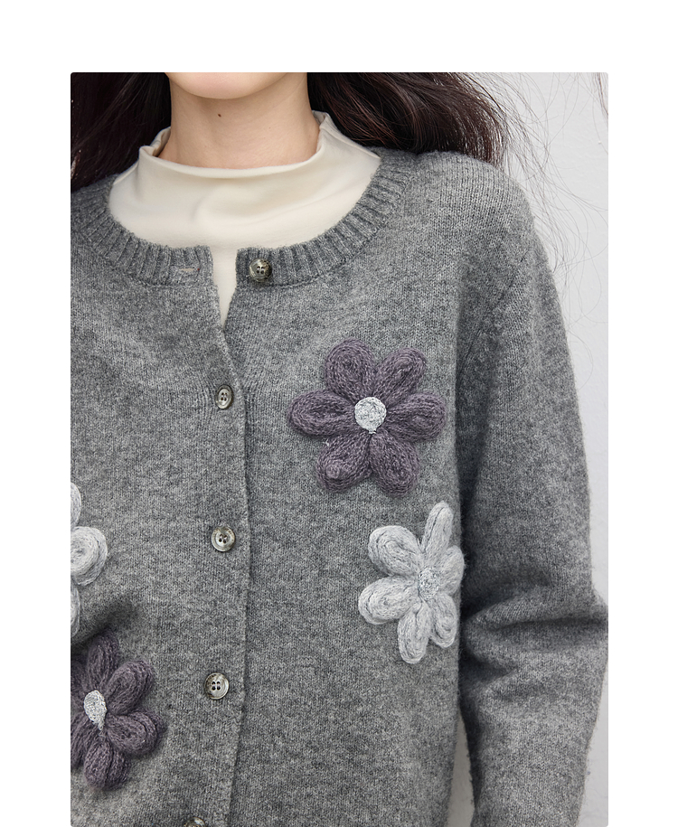 【周四狂欢价】熙世界仿牛绒立体花朵毛衣开衫女2025秋冬新款软糯灰色针织短外套